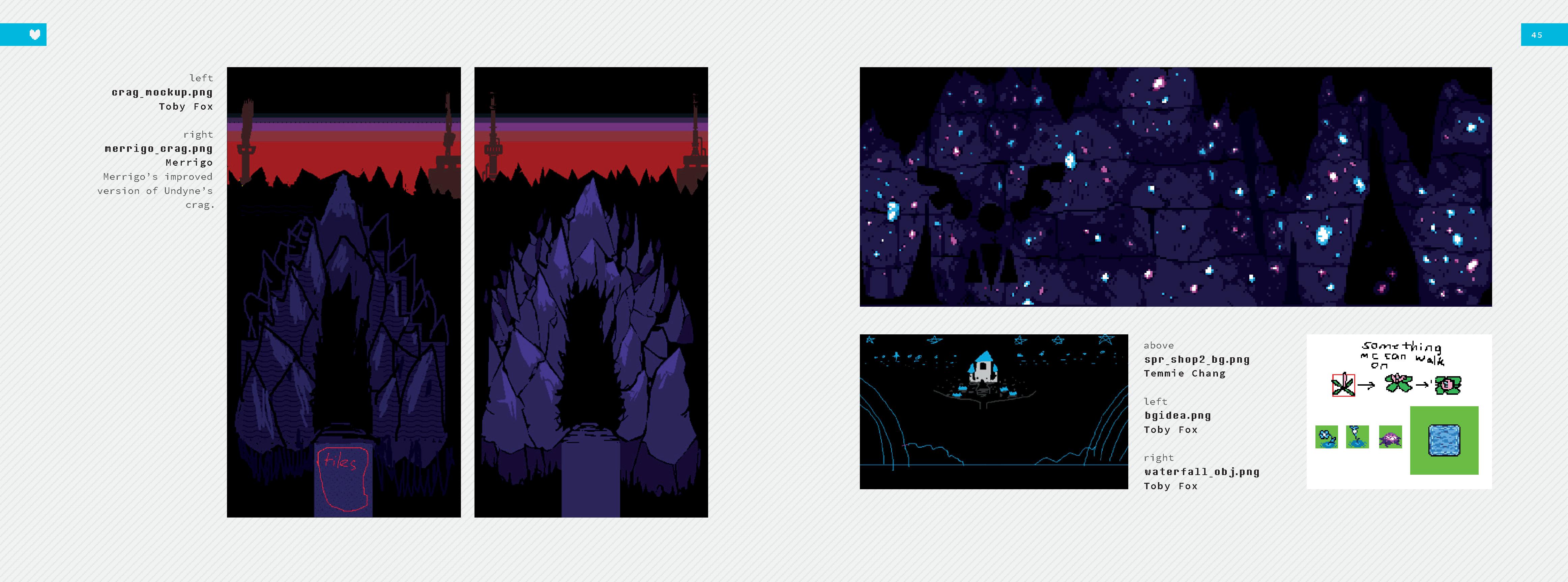 reading the ut artbook and it’s crazy that everyone tricked me into thinking toby sucks at drawing. I mean yea he’s not experienced or talented but all the battle sprites and text icons in undertale were done by him or imitating his style.someone on twitter already said this but i would love it if someone analyzed his style because it’s more than just “bad on purpose”