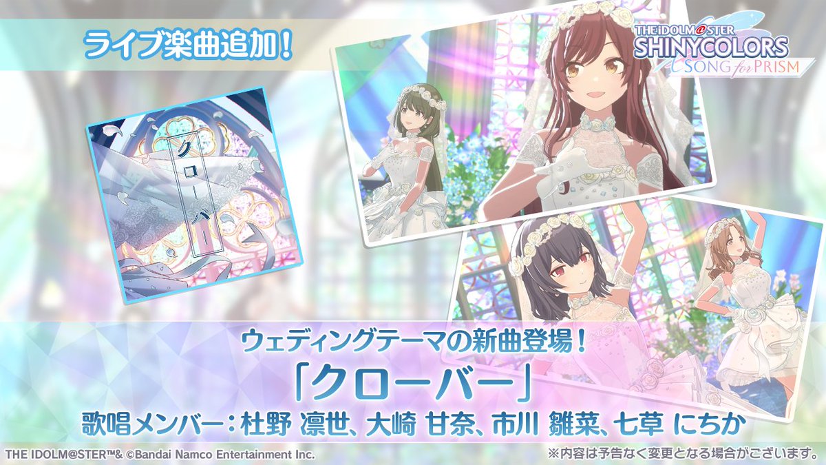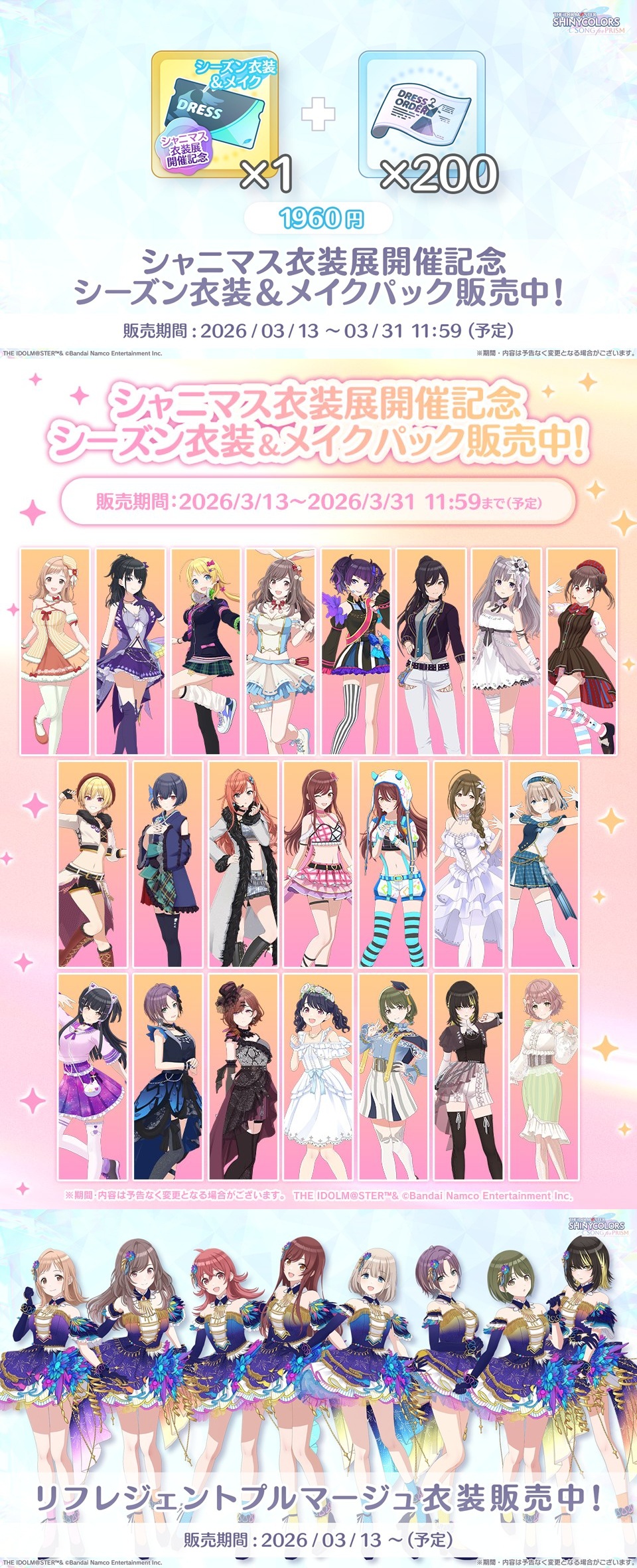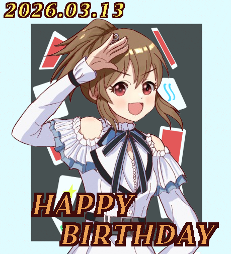iDOLM@STER ThreadPrevious iM@S Thread: >>560090991Official website: idolmaster-official.jpJapanese news: imasnews765.comEnglish wiki: project-imas.wikiAPKs: apk.ksmz.moeOld archive of materials: sites.google.com/view/yukipobackupOld FAQ + Resource Links: pastebin.com/icRtaLvvMaterial translations + Music downloads: pastebin.com/DebHdukECharacter birthdays: pastebin.com/cLdezeDuNext thread OP: pastebin.com/A5UGxTuBHelpful Links: pastebin.com/Z70CGAsN>Event/Gacha Dates (Mar 12th): >>560102798 >>560102870- Previous News: >>560090996 >>560091019TODAY:Mar 13th, 10PM JST: KAMISABI Music Card Game AP stream: >>559771692Mar 13th to Mar 22nd: Cinderella Girls POP UP STORE in Yurakucho Marui: >>553176948 >>553182953Mar 13th to Mar 24th: Shiny Colors 283PRODUCTION COSTUME G@LLERY ~MY F@VORITE COLLECTION~: >>544018675 >>547077468 >>547077610 >>547077773Mar 13th to Mar 31st: Cinderella Girls x Rakuten Mobile collab: >>559996925Mar 13th to Apr 13th: SideM Scratch Vol.5 on DMM Scratch: >>558755962Mar 13th to May 9th: Million Live 11thLIVE Kitakyushu Barimasu official accommodation plans: >>554877832Mar 13th to May 10th: Million Live "Welcome to Kitakyushu" Barimas collab: >>557262715 >>558746152