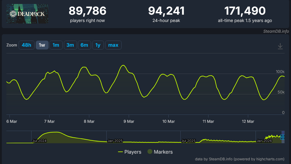 This is some unprecedented level of player retention for a game, considering both the state of matchmaking AND balance.