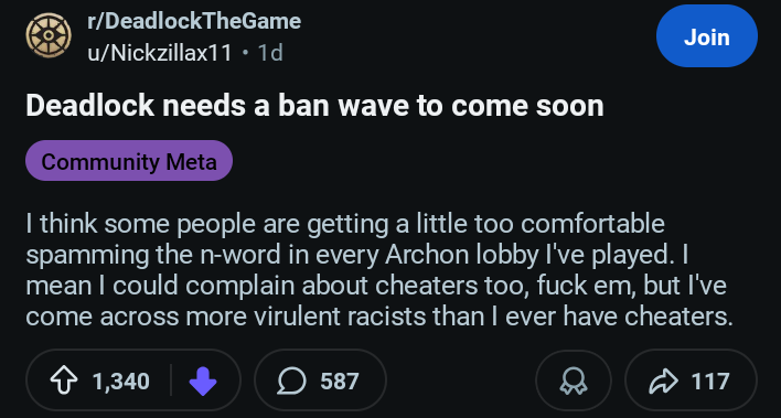 Mina Ha Edition>Latest patch:https://forums.playdeadlock.com/threads/03-06-2026-update.114328/post-220287>Steam Page:https://store.steampowered.com/app/1422450/>Where to leave feedback and report bugs:https://forums.playdeadlock.com/>How do I git in?Post your Steam profile and ask. You need to accept a friend request to be invited, so don't be a sperg.>How do I git gud?Do the tutorial, get a feel for each hero in sandbox mode, explore public item builds, watch replays. Playing a Hero for the first time will put you into a lower rank game*, so don't worry about it too much.Additional Resources:>Unofficial Wikihttps://deadlock.wiki/>Collection of useful character buildshttps://deadlockmeta.com/>New Player Guidehttps://docs.google.com/document/d/1lMBE7Nli_sVJ42d-kPHjF3MBaXZdIM46gNJQC_fMGMU/>Advanced Movement Guidehttps://www.dlmovement.wiki/>Unofficial Stat Tracker (Unreliable due to API rate limits)https://statlocker.gg/https://tracklock.gg/>Unofficial Competitive Newshttps://edl.gg/>Unofficial Voiceline Viewerhttps://deadlock.vlviewer.com/Threadlocked: >>560117919