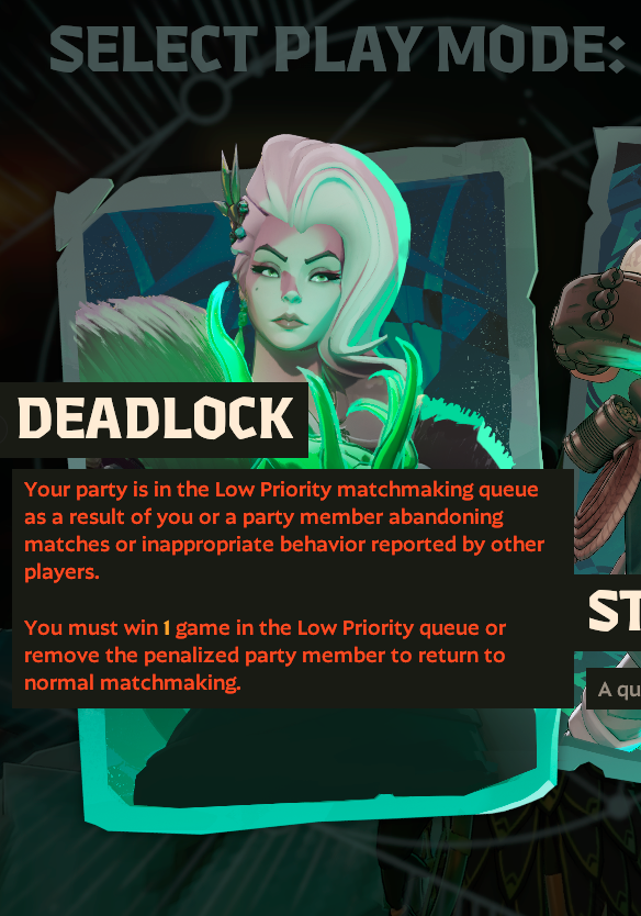 >You can get put into a low prio queue with hackers for abandoning too many matches with 0/20 teammates