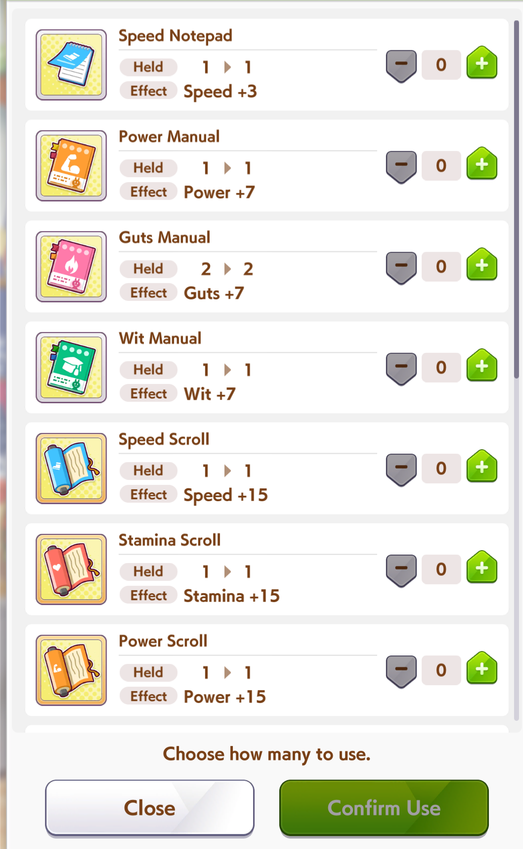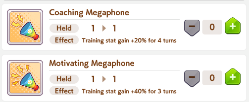 Unironically, it's a good idea to save them for the very last training day. You'll never know whether you get a fucking +100 speed rainbow which would've gone to waste if you ate up all your items like a retard