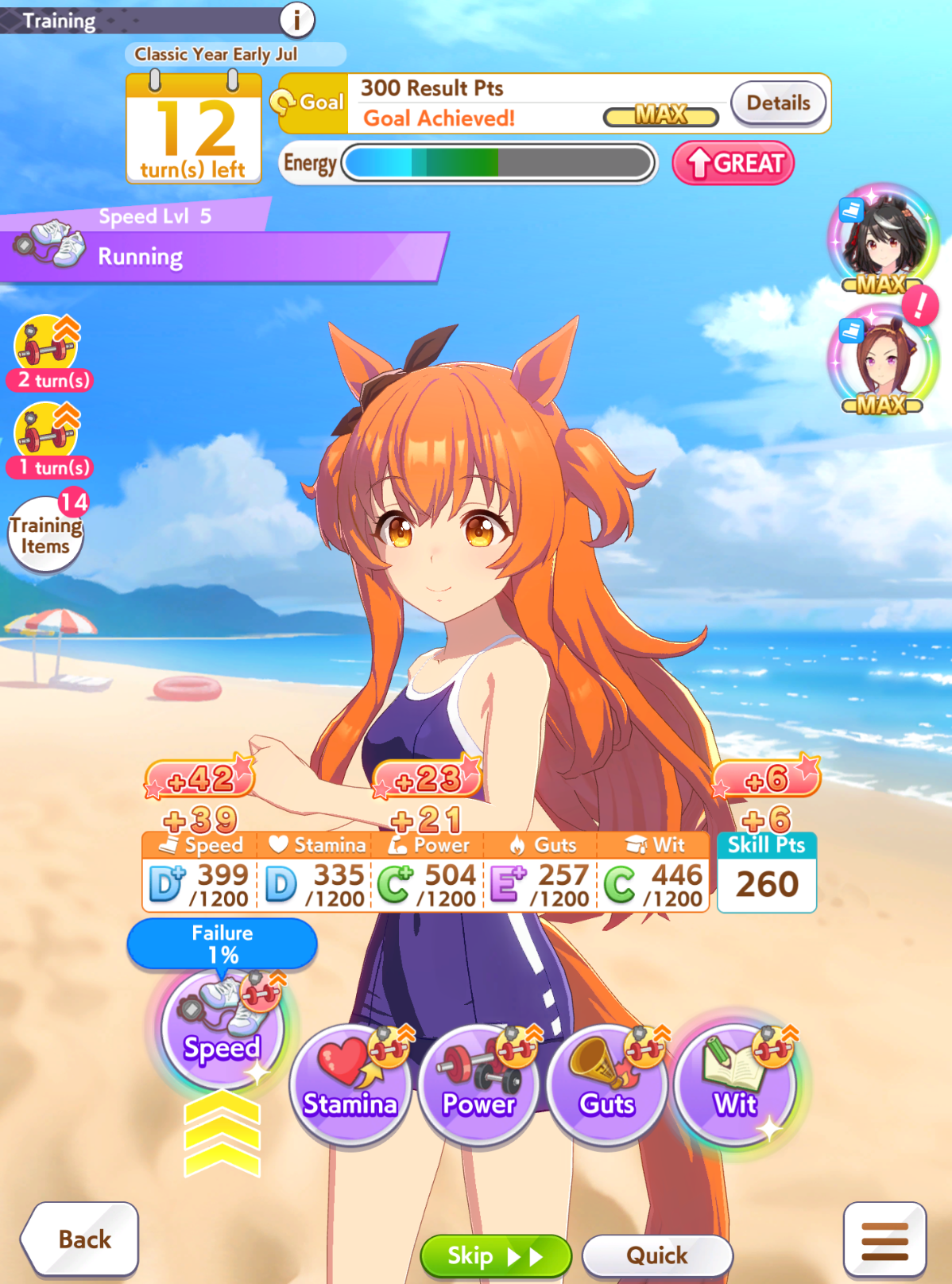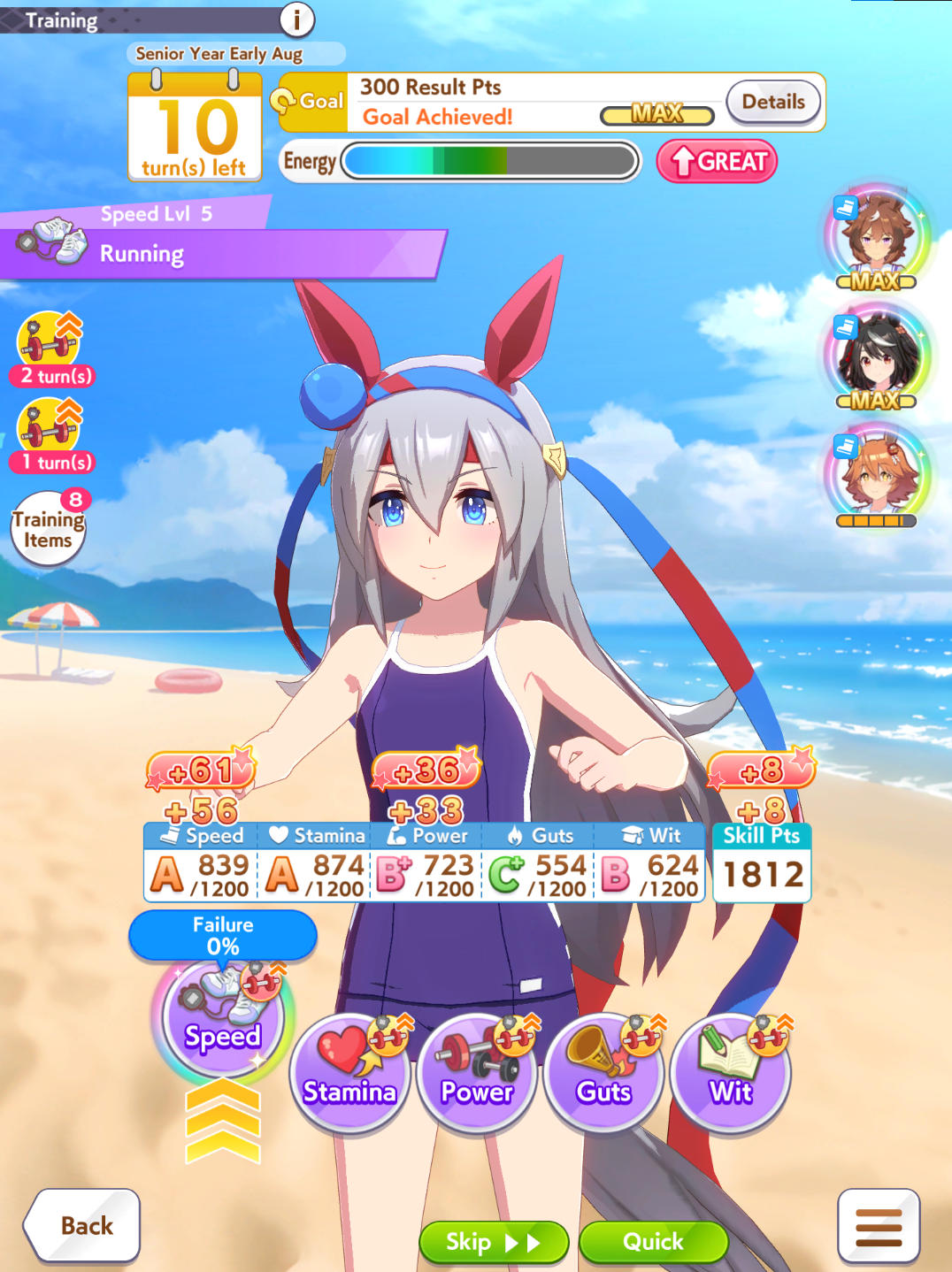 it seems quite difficult to cap speed without multiple speed rainbows, at least on 0% umas