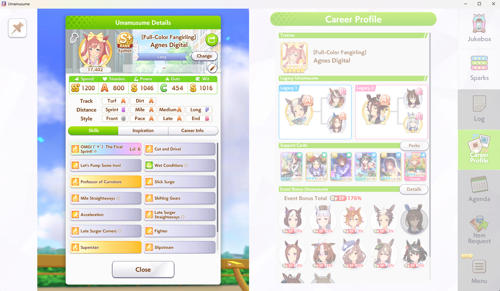 WTF post your honse, stats, parents, skills, races done, home address and credit card please...