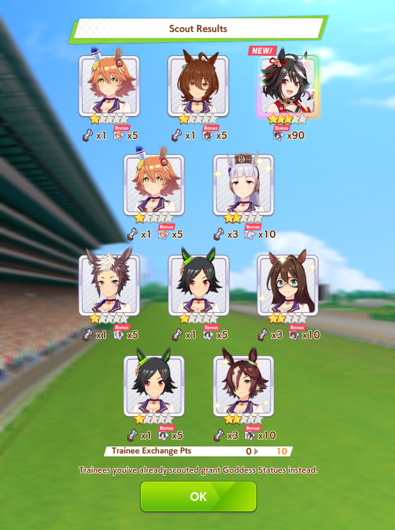 That just means I have a chance to increase her stars. Also wouldn't have gotten my new Oguri if I'd held myself back