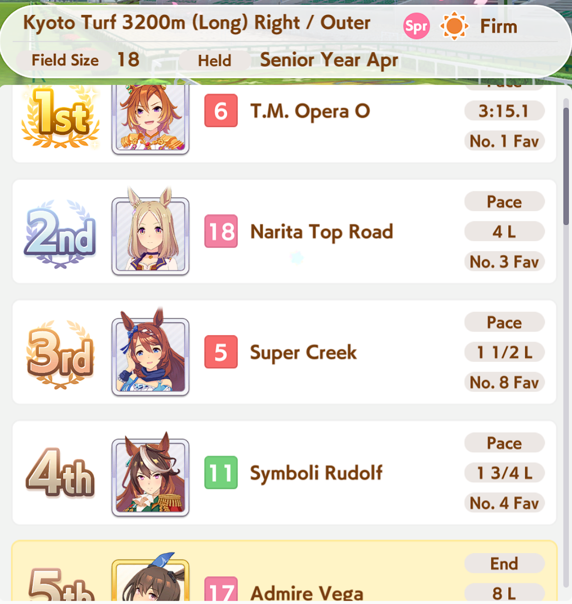 03/05 - Admire Vega (3*), Kawakami Princess (SSR), Fine Motion (SSR)