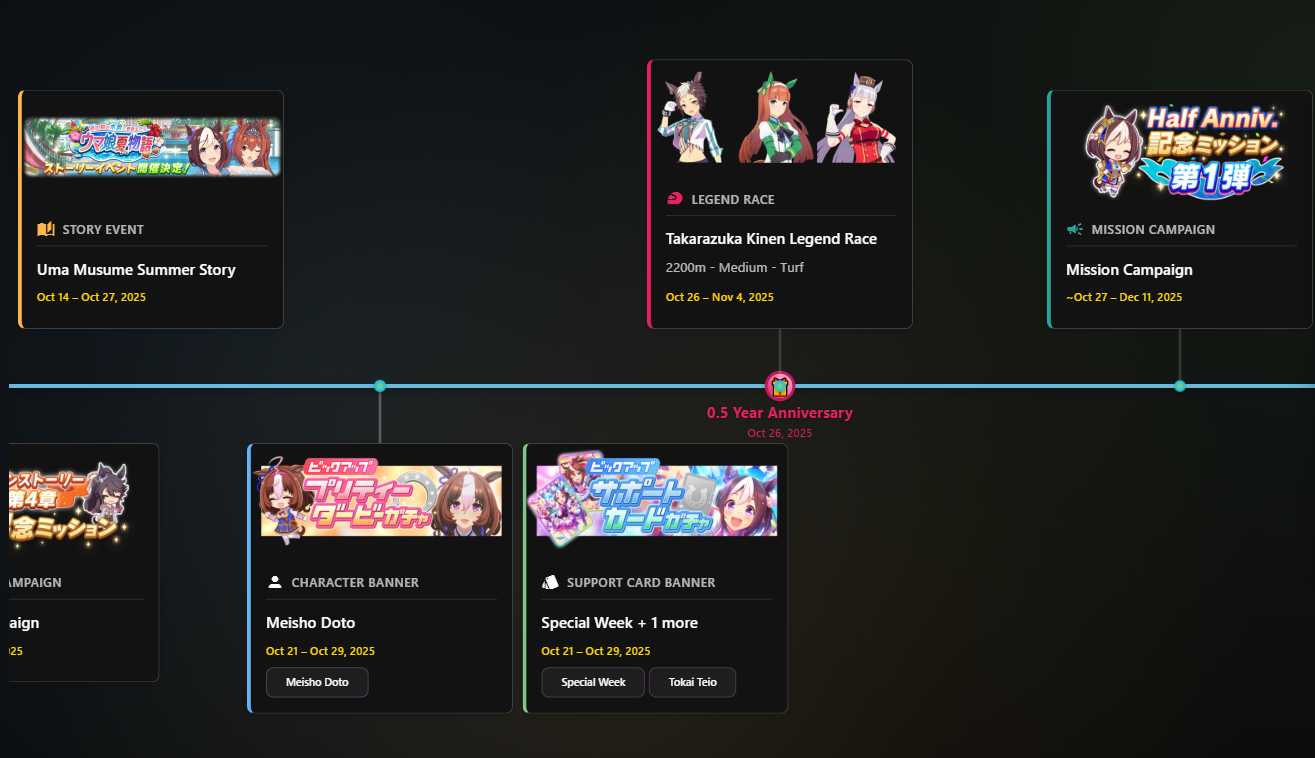 Timeline: https://uma.moe/timeline