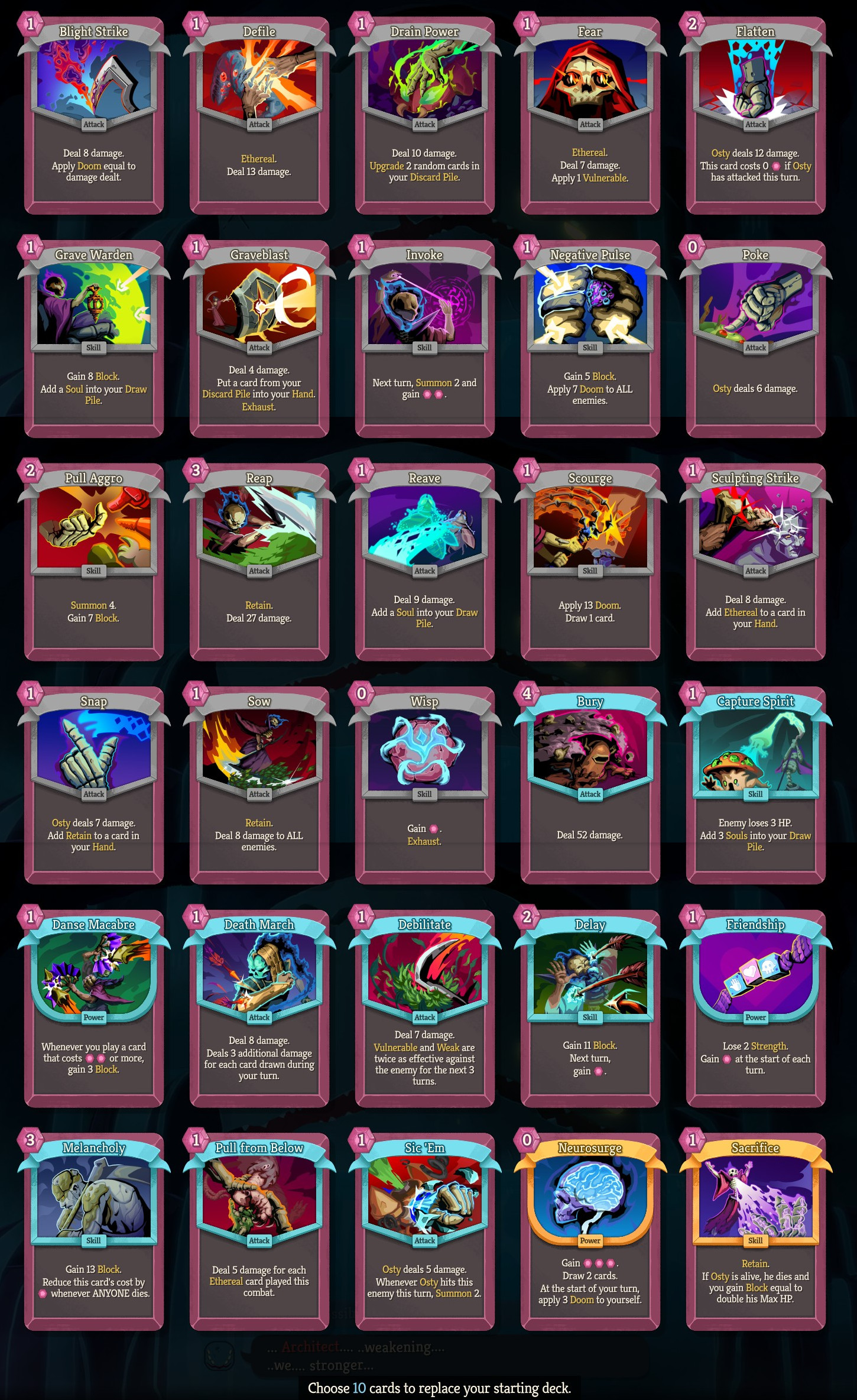Unlocked Draft yesterday, and it honestly made the game so much better, now I am honestly starting to get it. But it's quite funny considering that when I was asking for help struggling with some of the starter decks, everyone just told me to draft better, and now I am wondering if they just assumed that everyone has it due to playing STS1 for a million hours.So far though, I think the robot is my favorite, completed my first A1 run using a lightning channeling build, and it was really fucking fun. It also feel's like all of his cards plays off each other so much better compared to Necrobinder who feels more focused in regards to what cards you pick