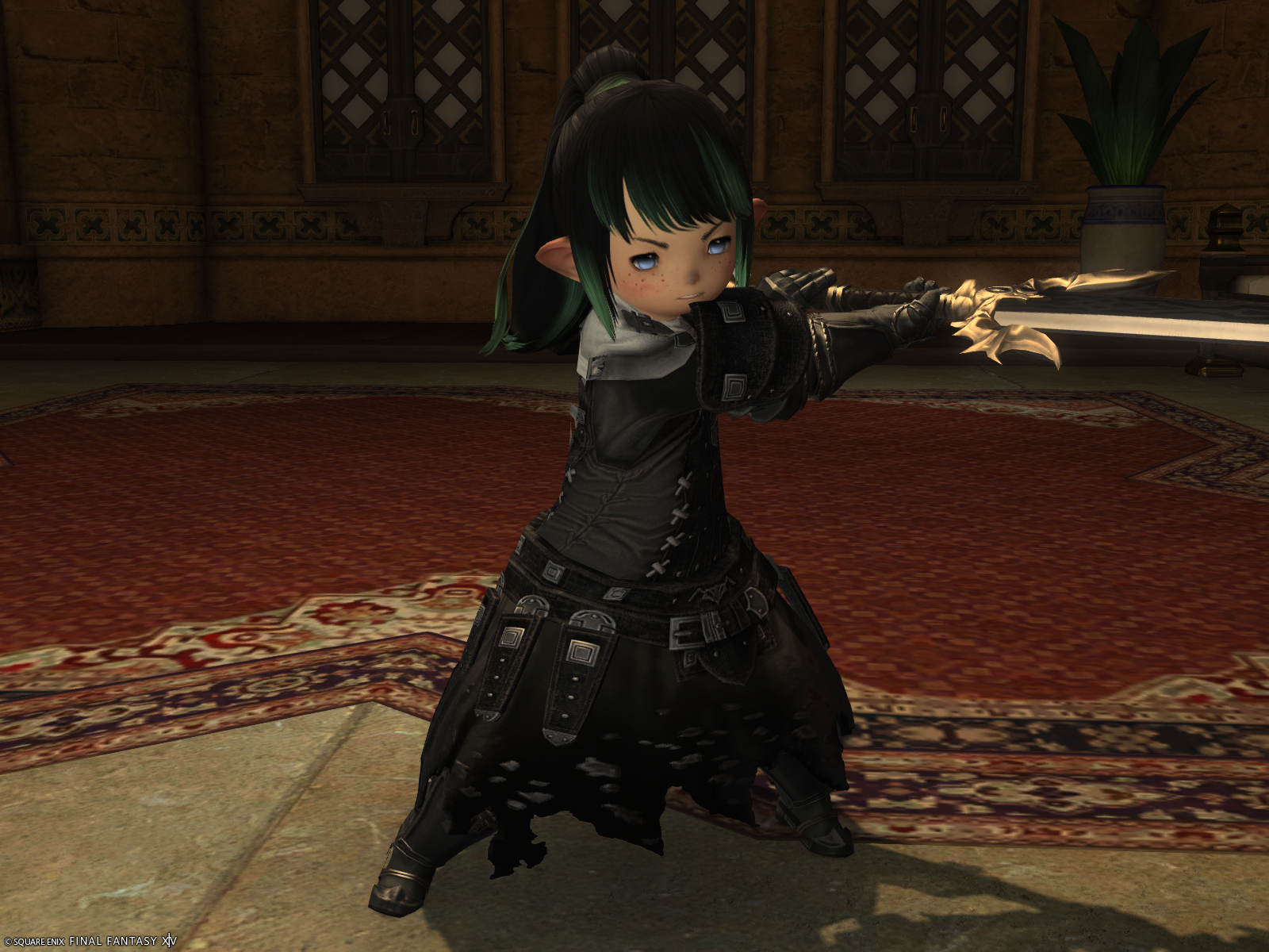 my malera walks the streets of balmung uldah like this