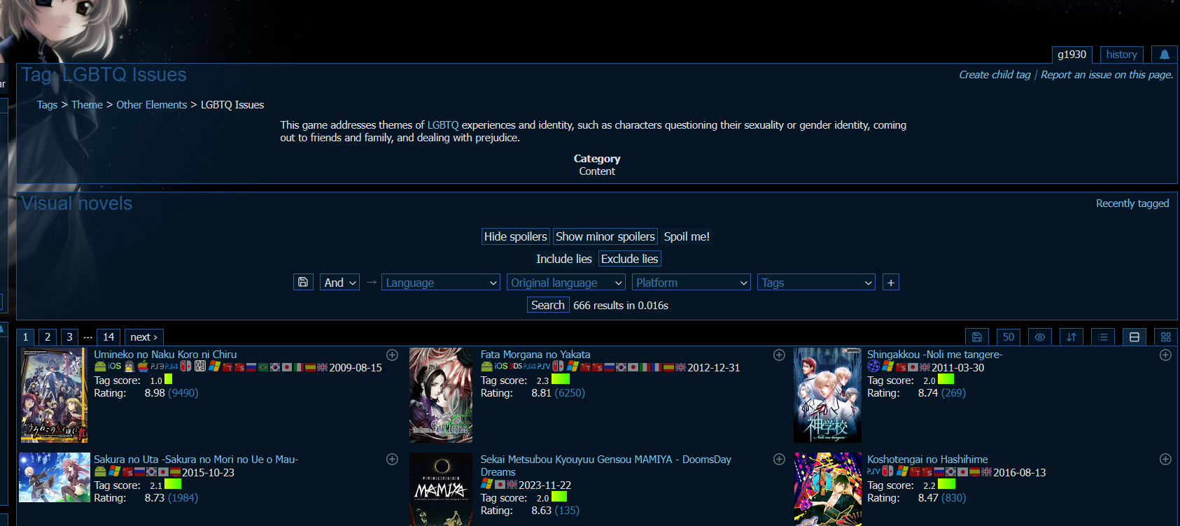 >>560239938I'm not going to respond to anymore retarded posts after this >Mahoyo still isn't "hot" in any way whatsoeverIf multiple people are finishing it every day and rating it in the range of 7 to 10 on average, then it is "hot". It's one of the highest rated VNs on the site. It's a great VN/Kinetic novels and a good choice for someone who hasn't read anything in 10 years
