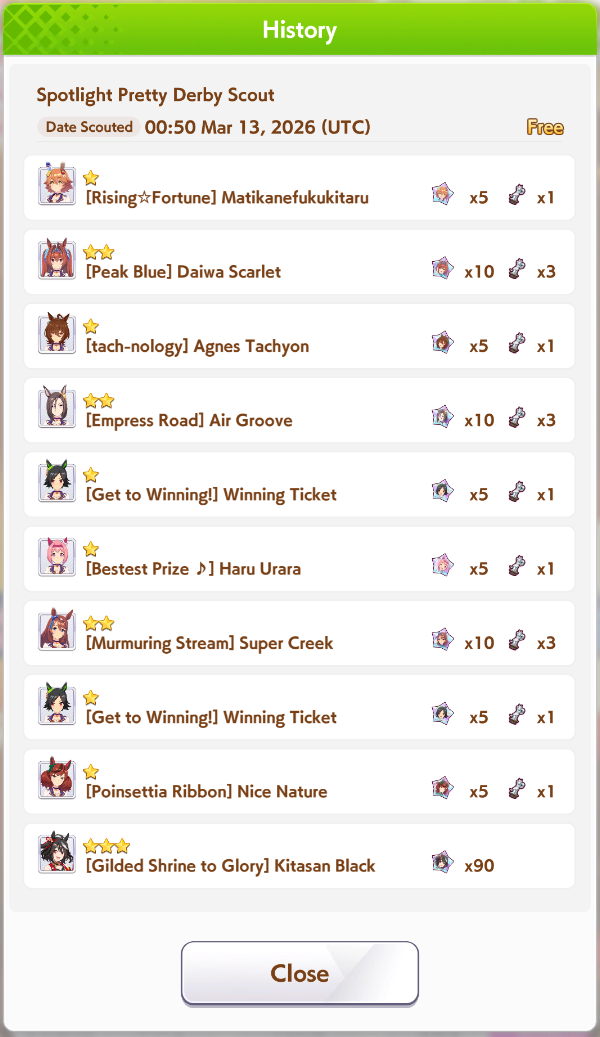 Current Rate Up Trainee: Admire Vega (3*), Kitasan Black (3*), Matikanetannhauser (2*)