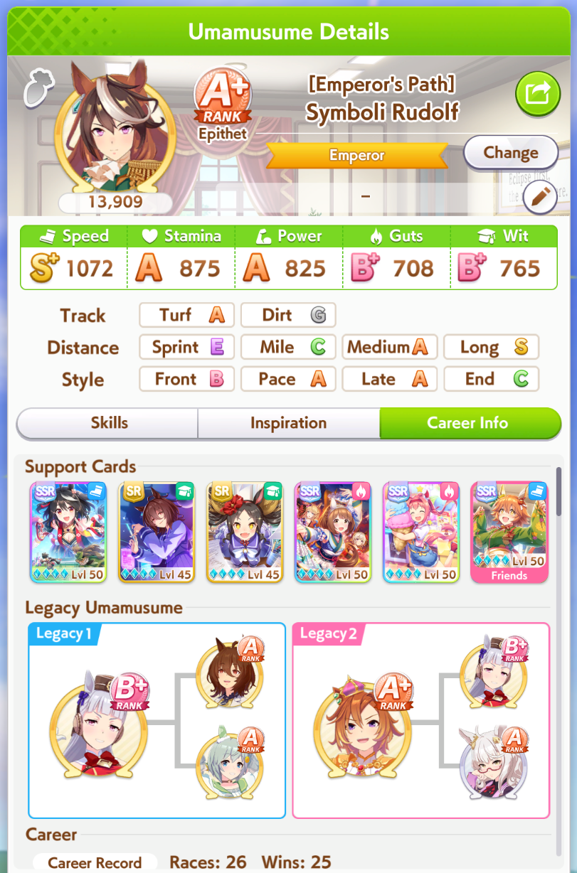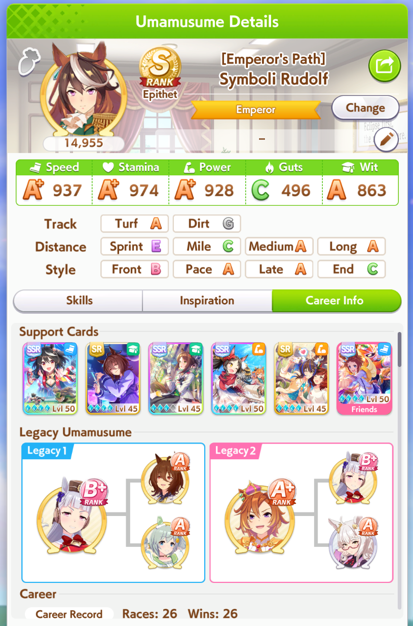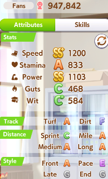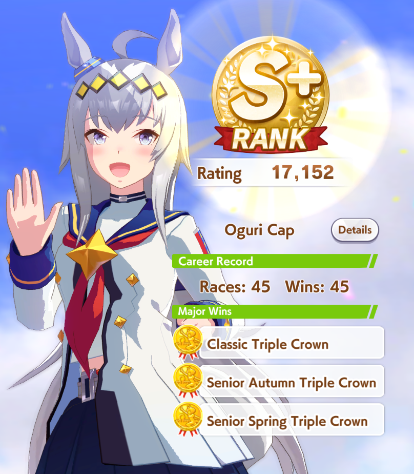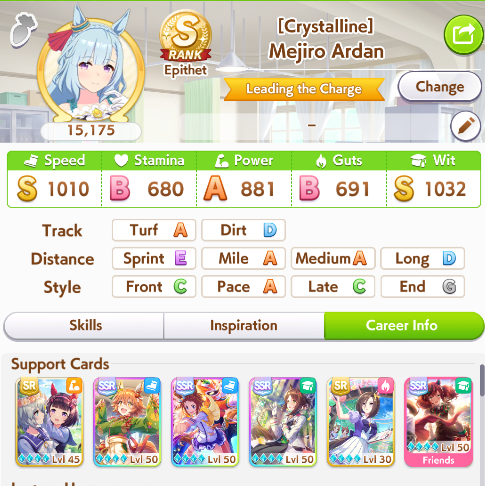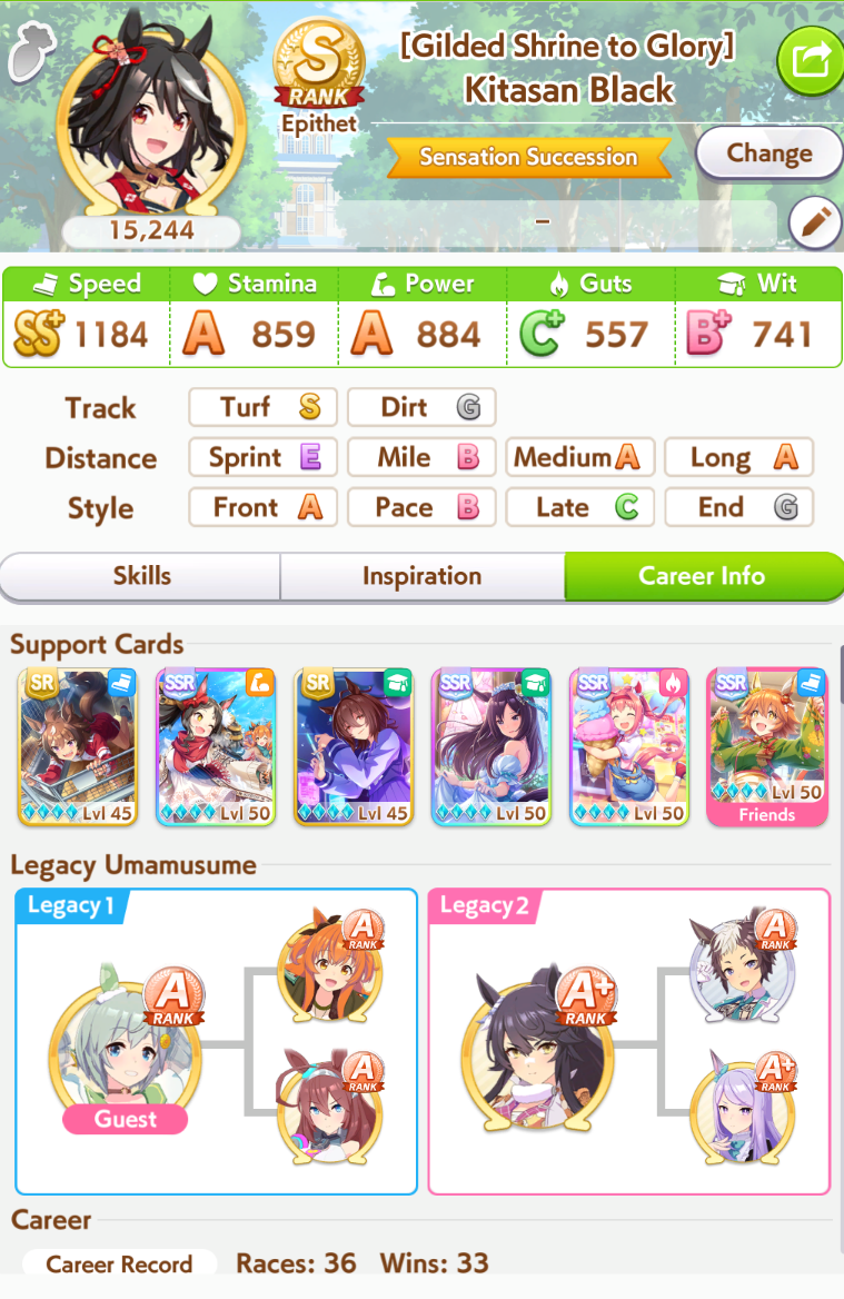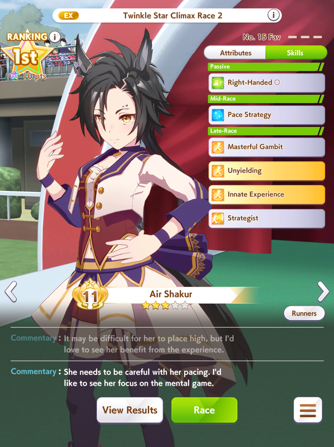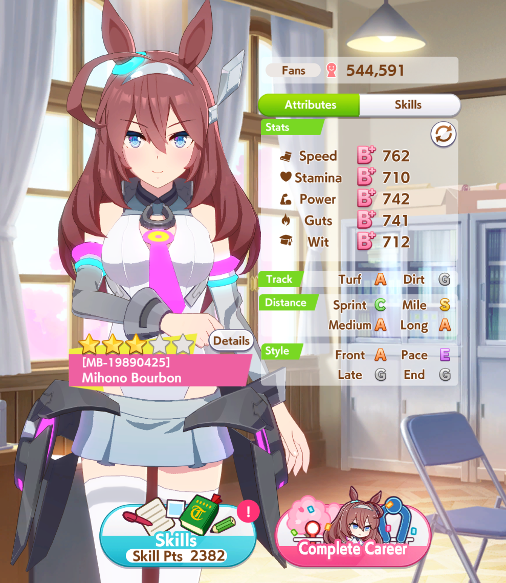 Getting a Pisces ace out of this will be pretty tricky but I can see the potential for sure. I think I actually raced too much and didn't train enough, my facilities were super low level at the end and I wasn't able to make very good use of summer camp due to lacking energy drinks.