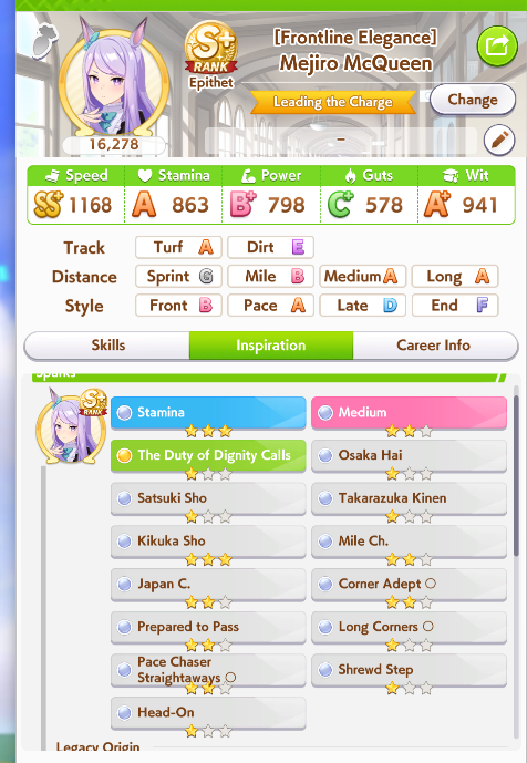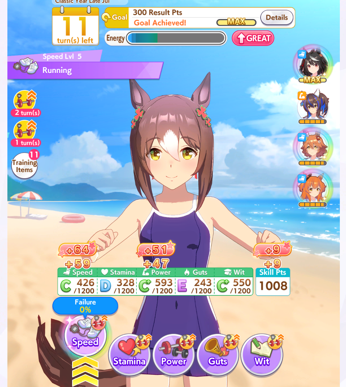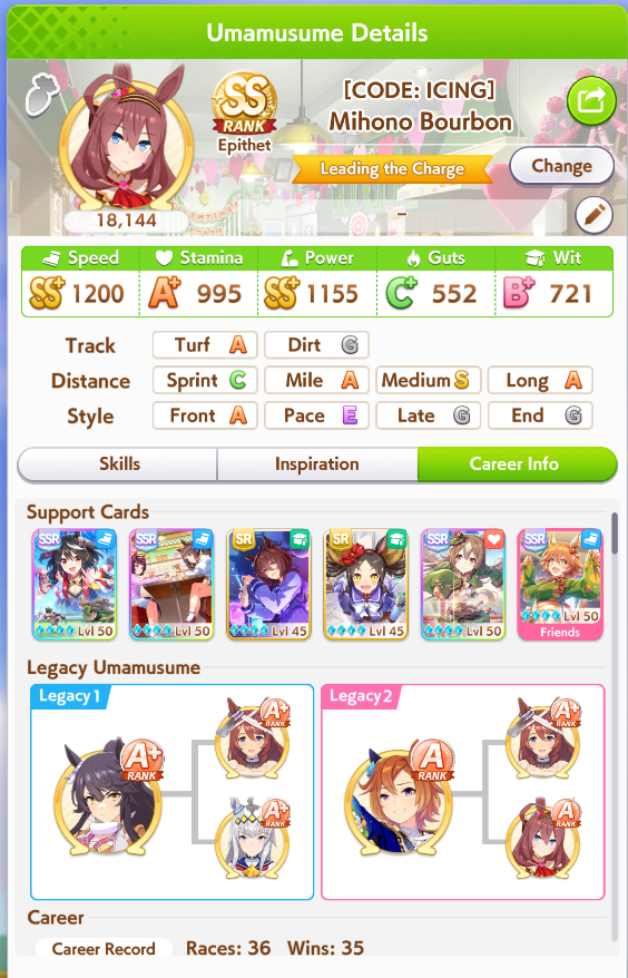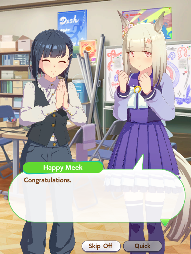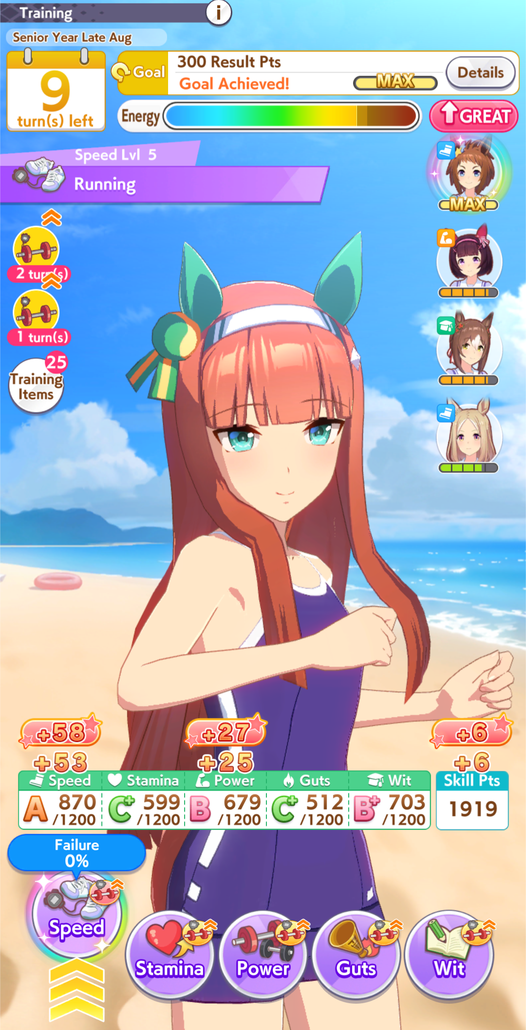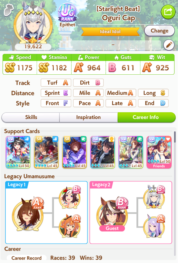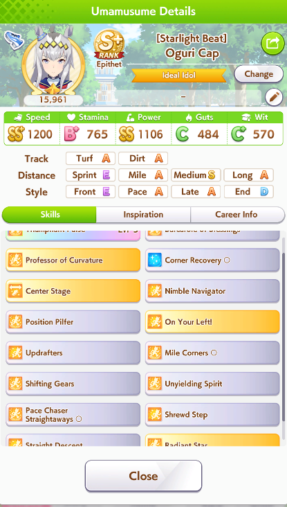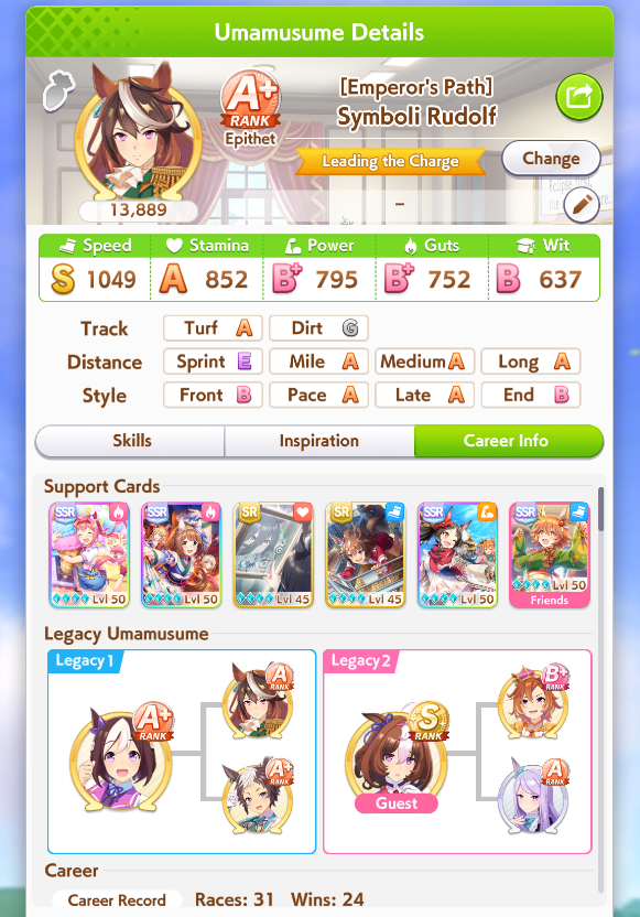 Getting a Pisces ace out of this will be pretty tricky but I can see the potential for sure. I think I actually raced too much and didn't train enough, my facilities were super low level at the end and I wasn't able to make very good use of summer camp due to lacking energy drinks.