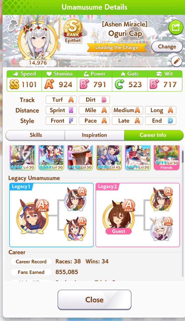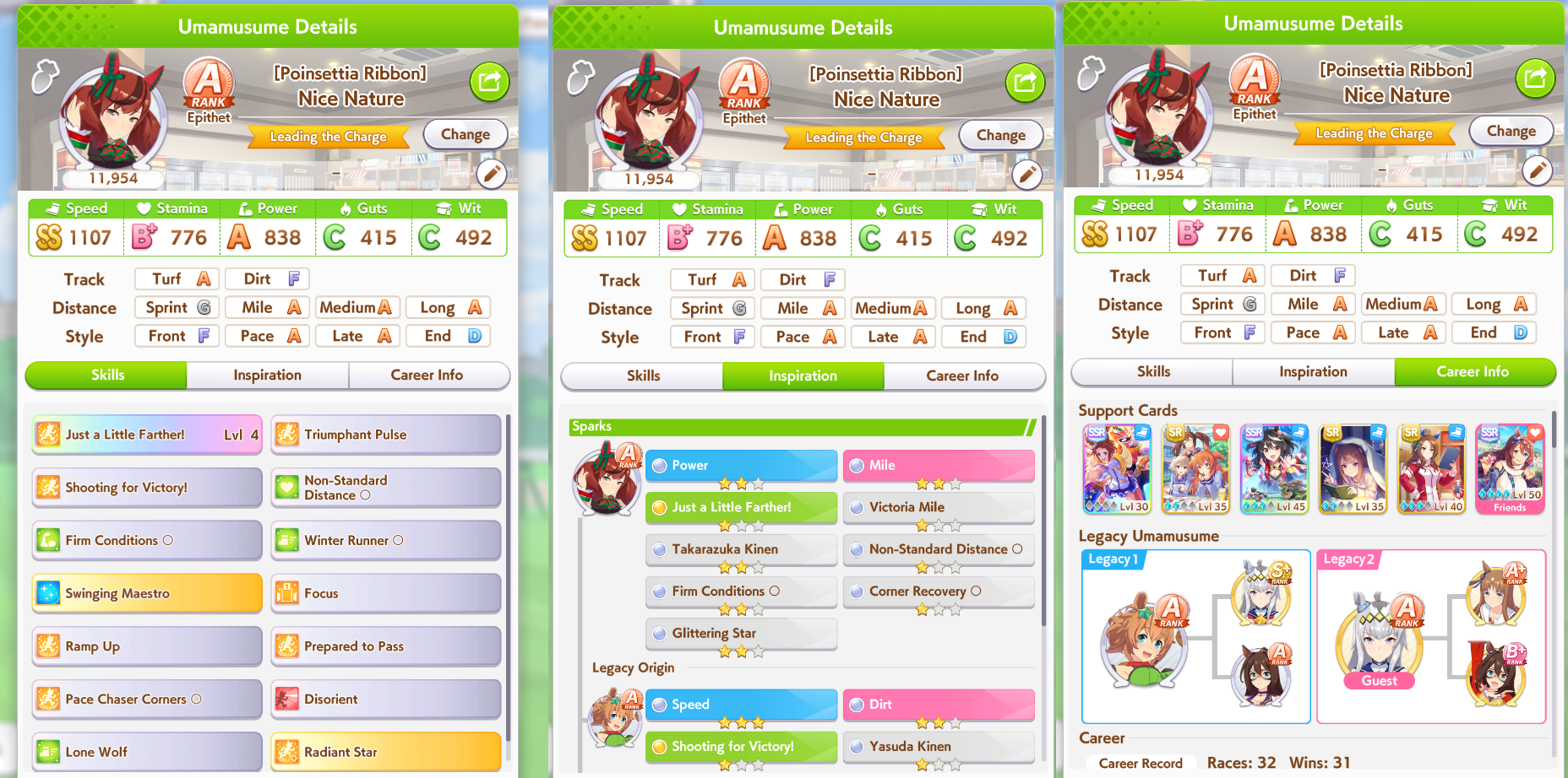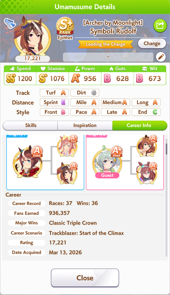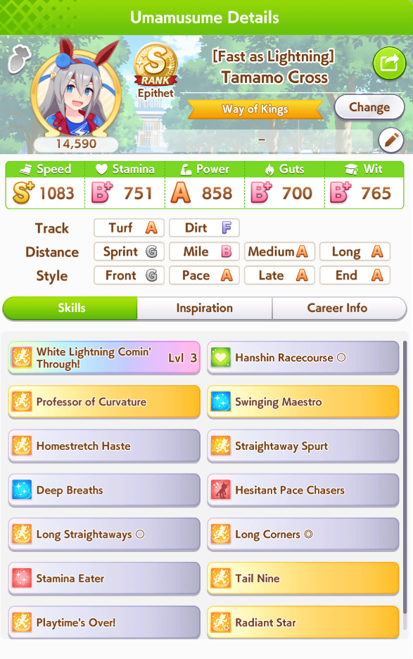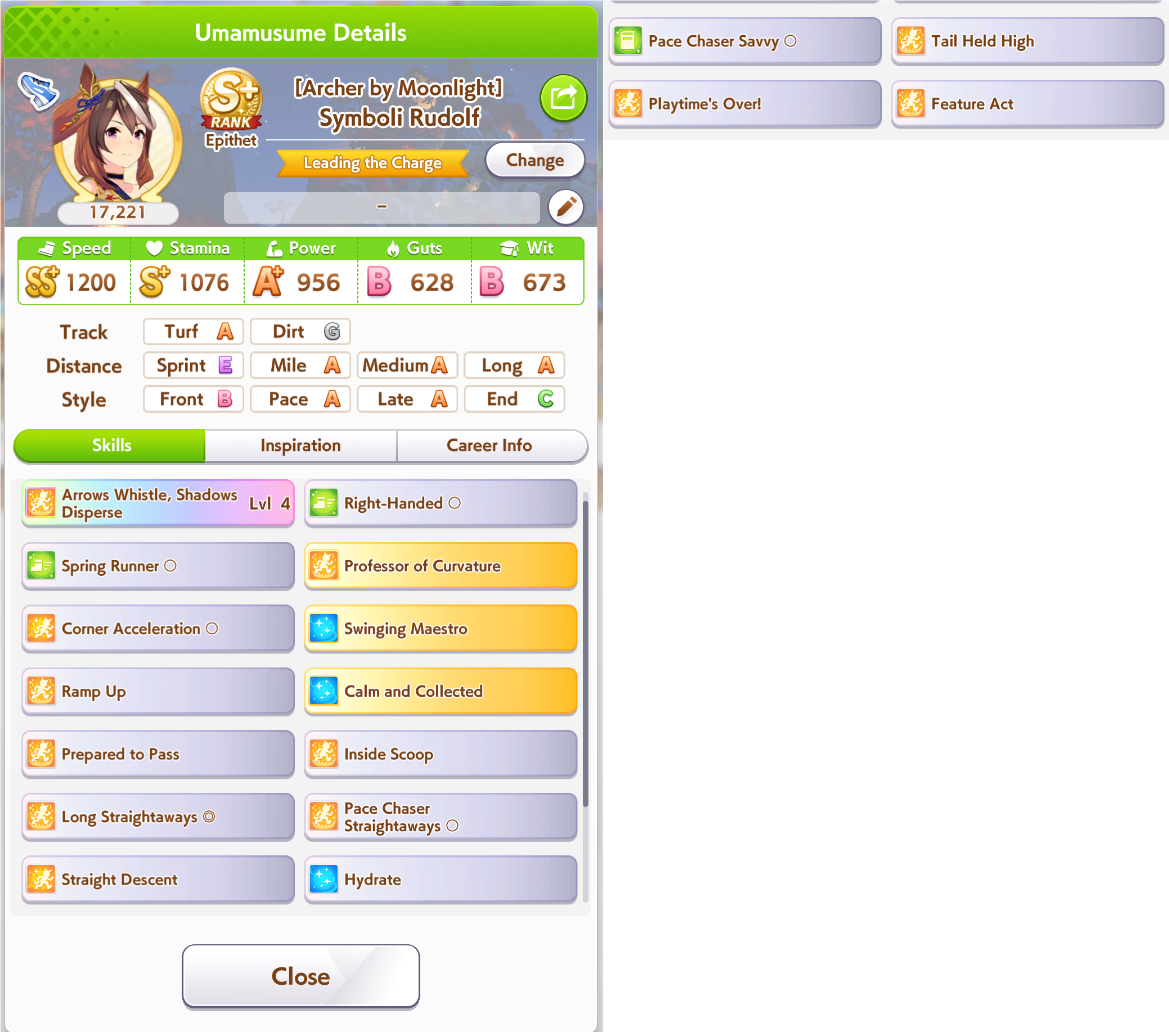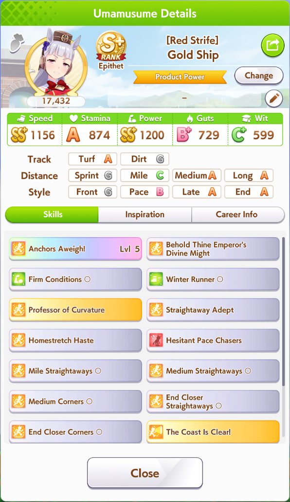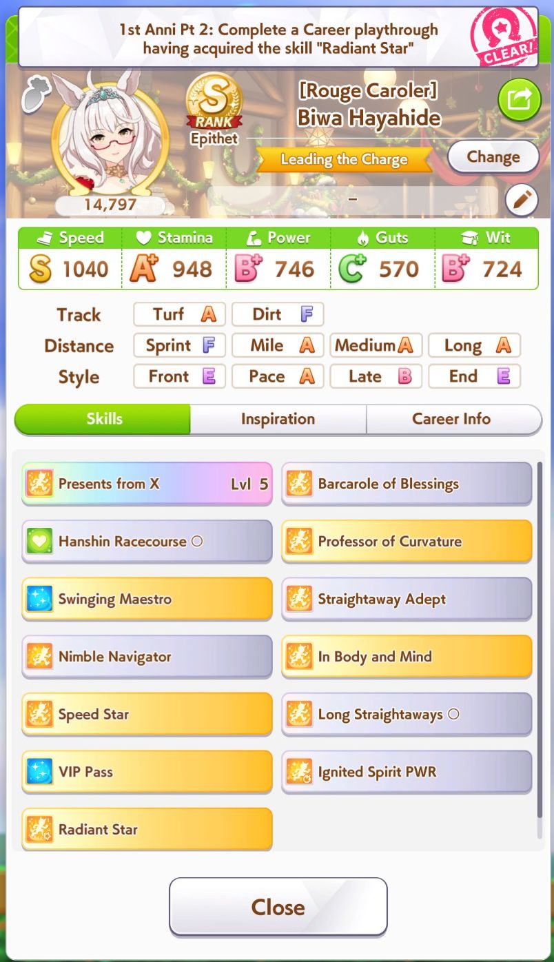 Getting a Pisces ace out of this will be pretty tricky but I can see the potential for sure. I think I actually raced too much and didn't train enough, my facilities were super low level at the end and I wasn't able to make very good use of summer camp due to lacking energy drinks.
