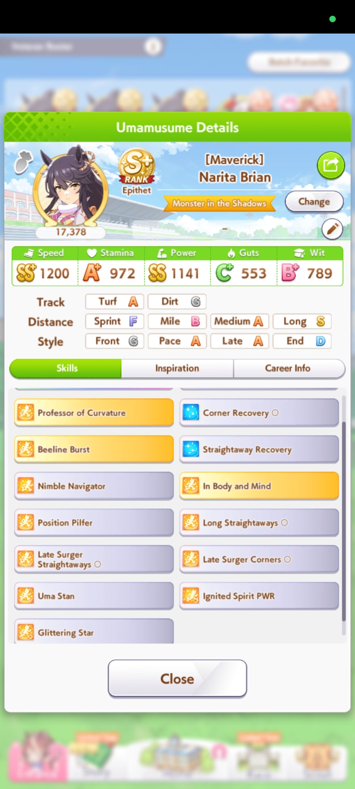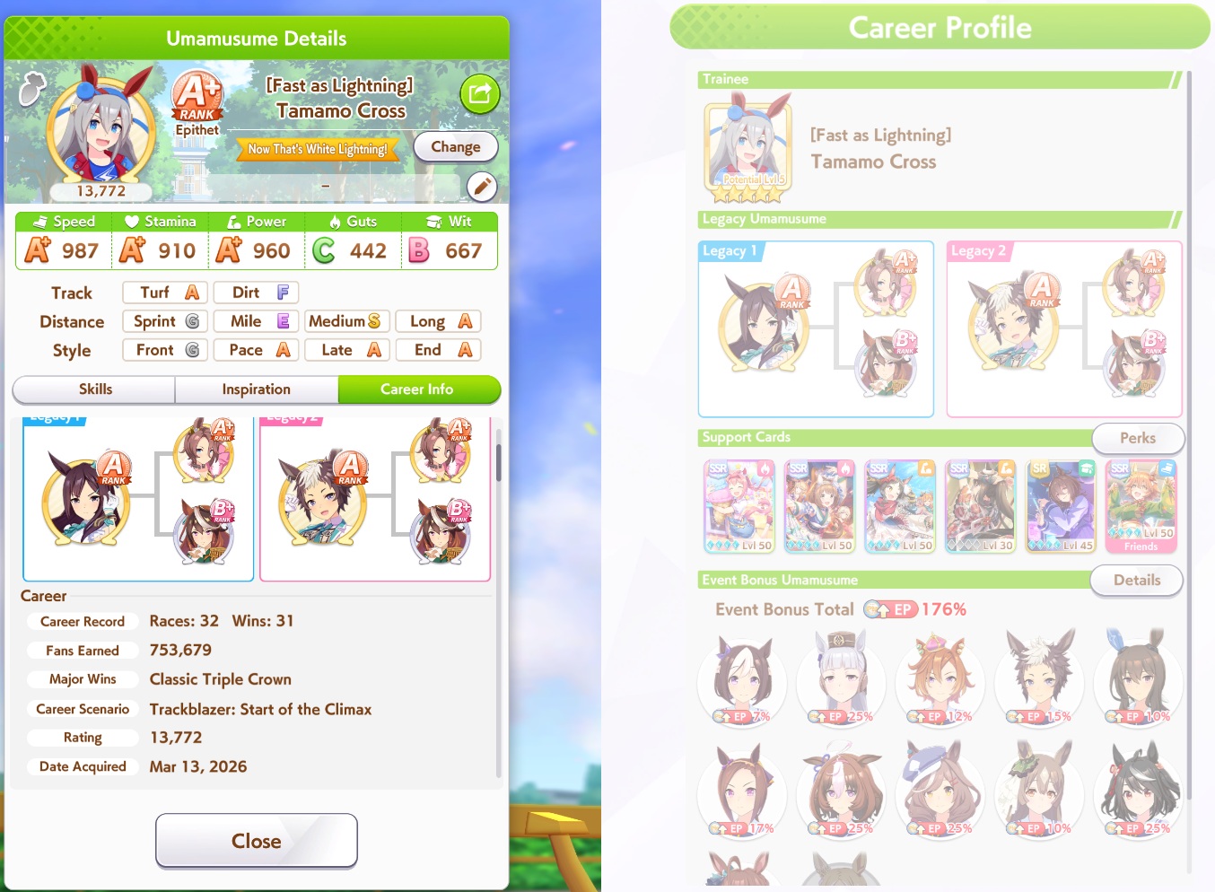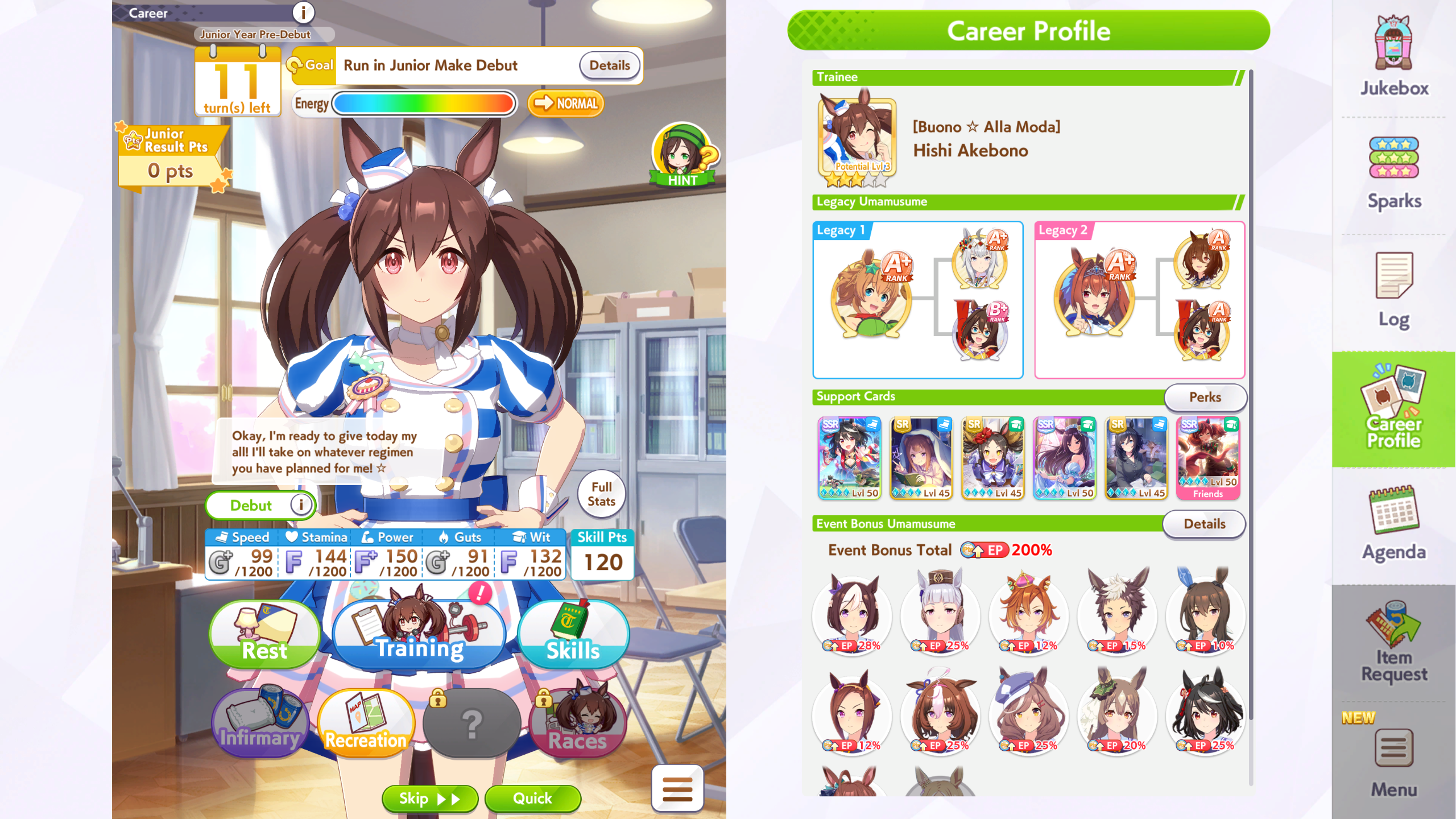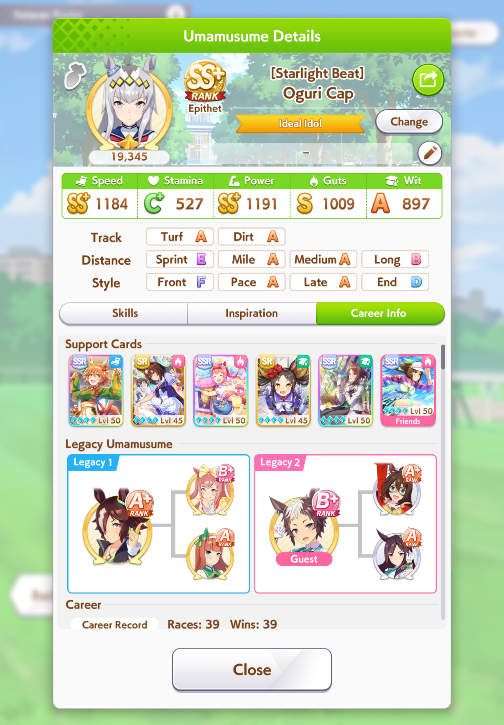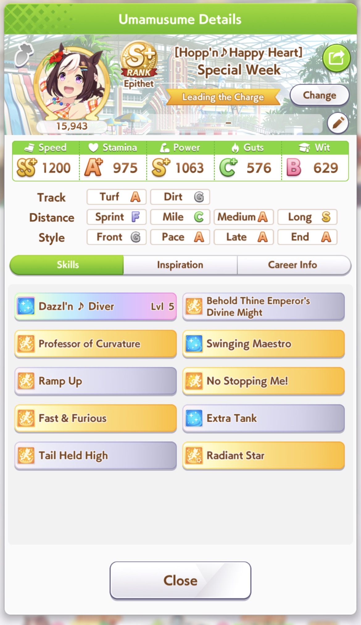 Getting a Pisces ace out of this will be pretty tricky but I can see the potential for sure. I think I actually raced too much and didn't train enough, my facilities were super low level at the end and I wasn't able to make very good use of summer camp due to lacking energy drinks.