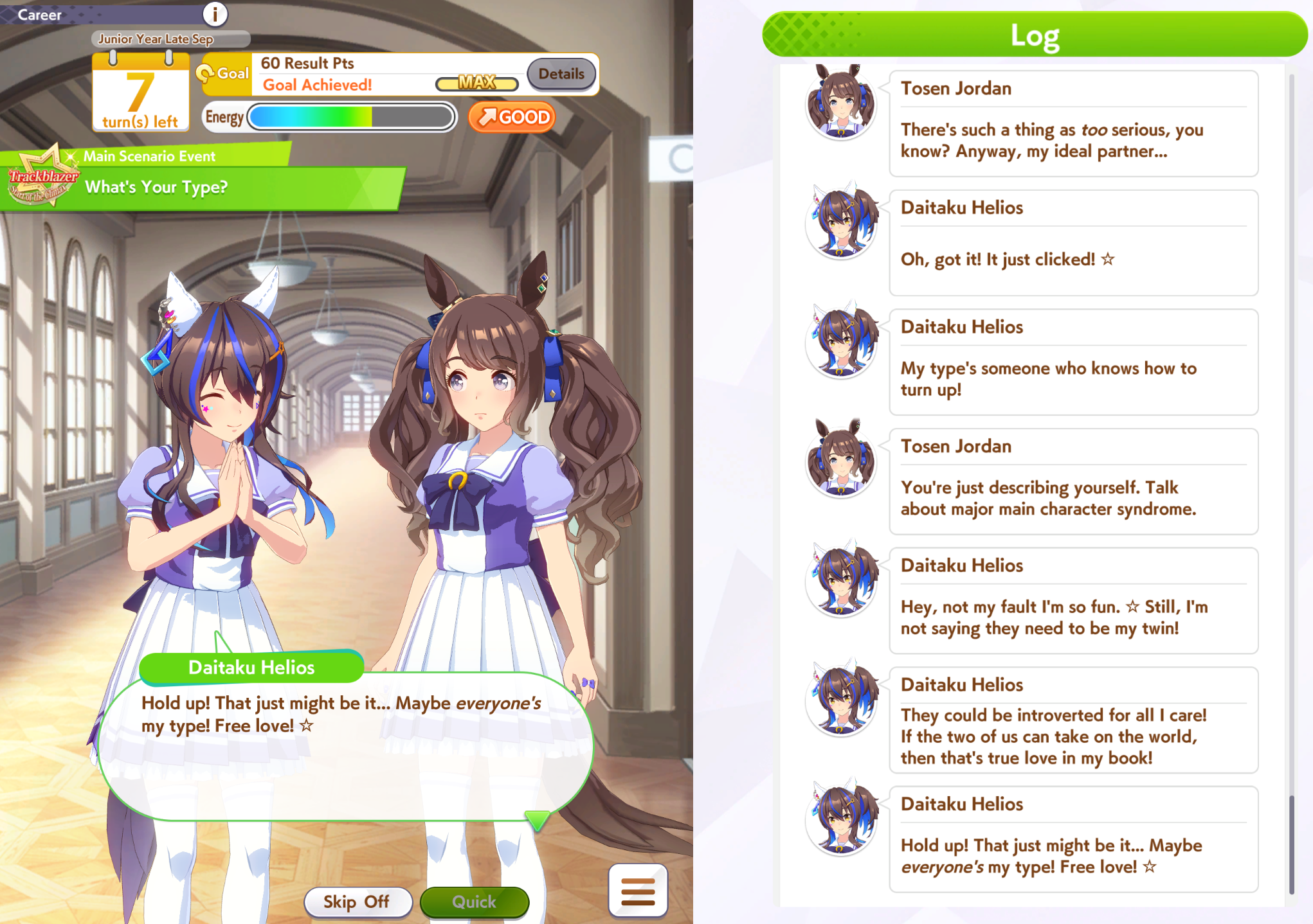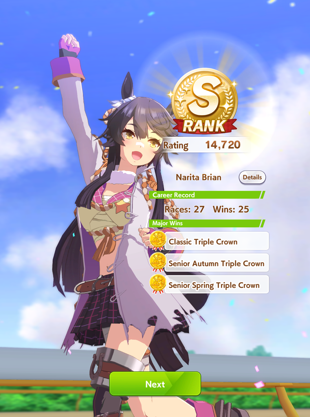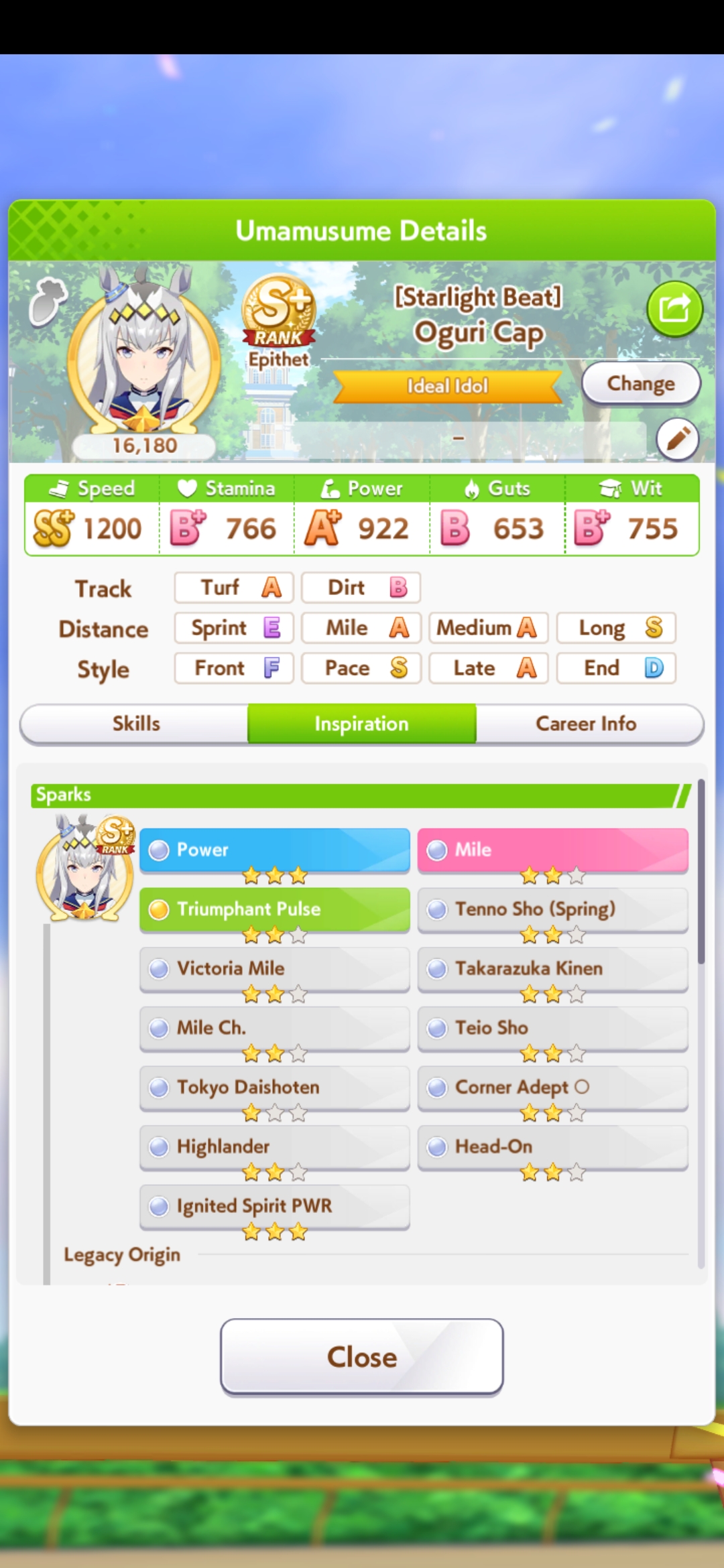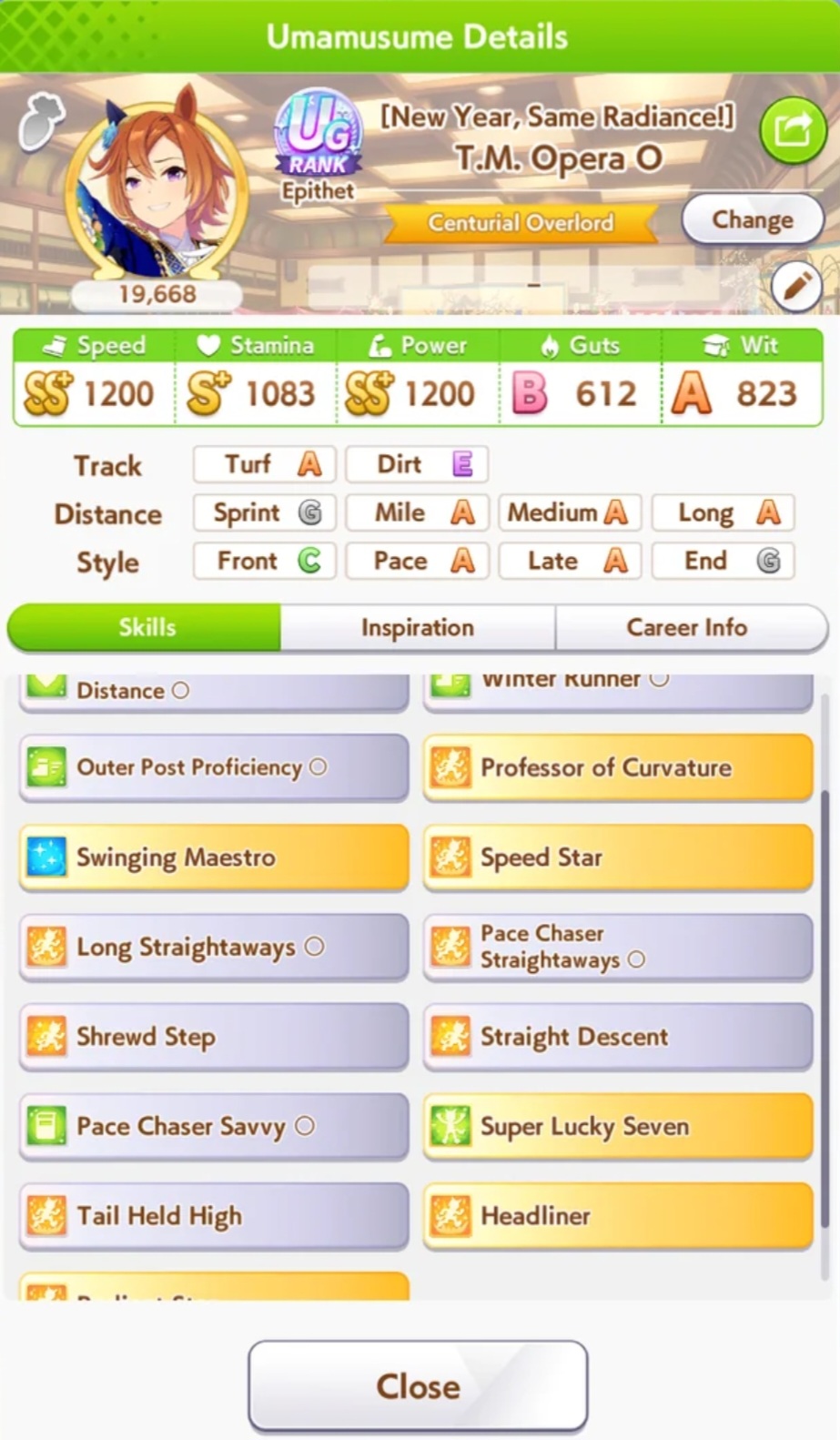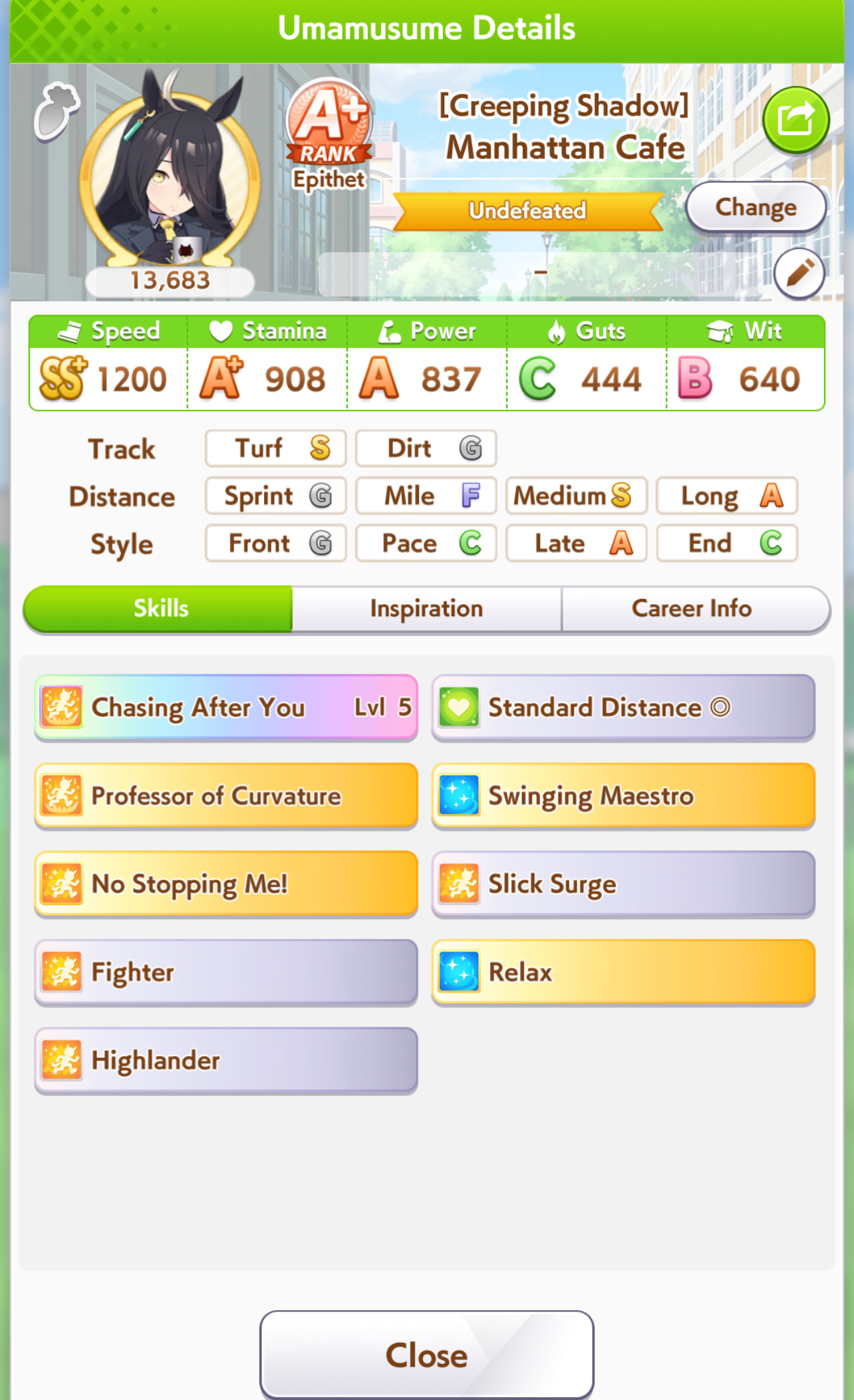Getting a Pisces ace out of this will be pretty tricky but I can see the potential for sure. I think I actually raced too much and didn't train enough, my facilities were super low level at the end and I wasn't able to make very good use of summer camp due to lacking energy drinks.