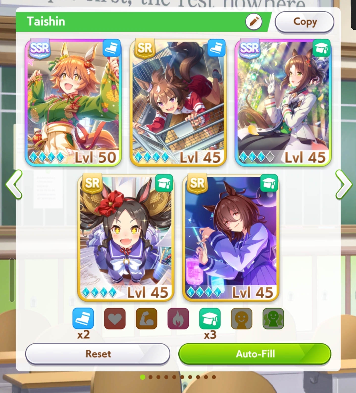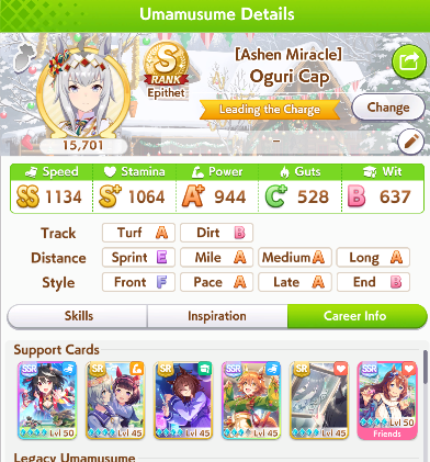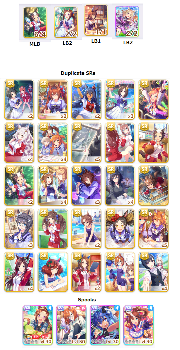 my shinko is only LB1, but yeah I definitely need one more speed card, need to check which ones I can use to still reach 50 race bonus