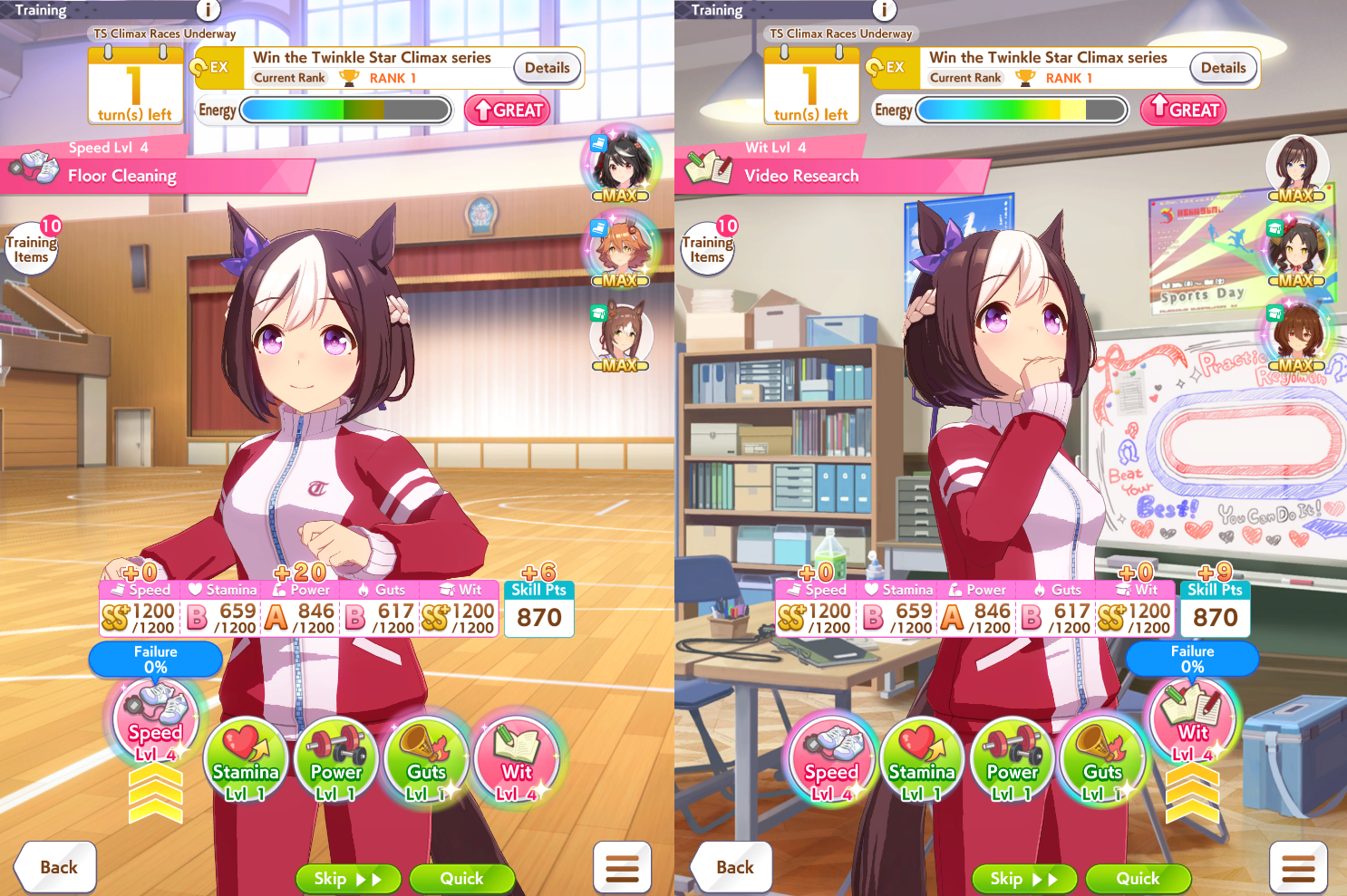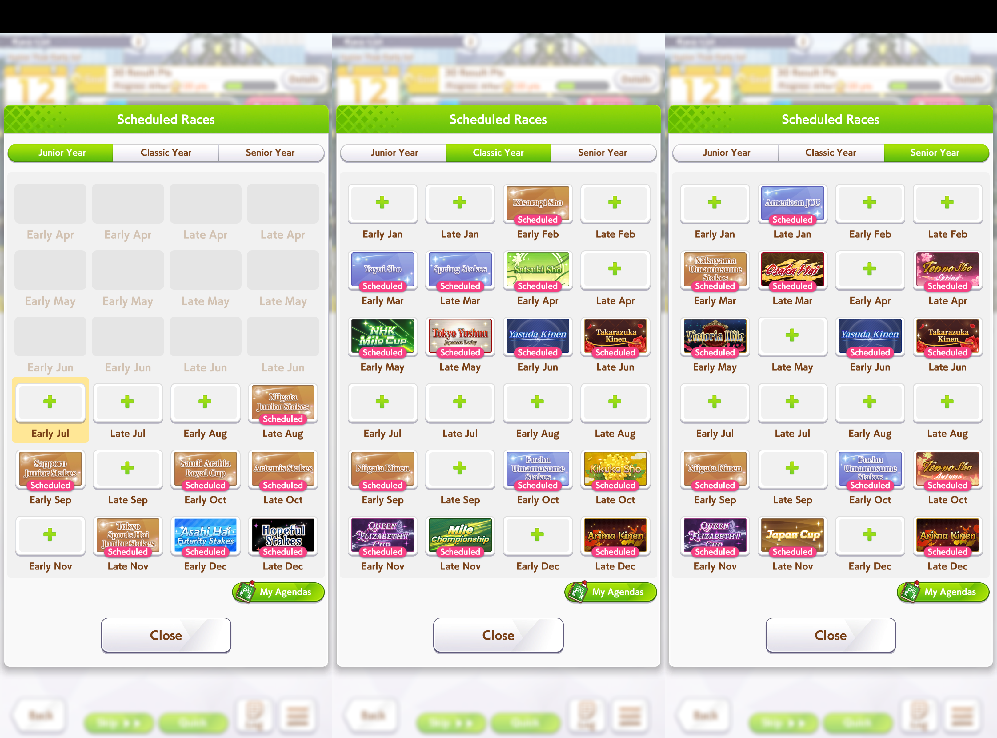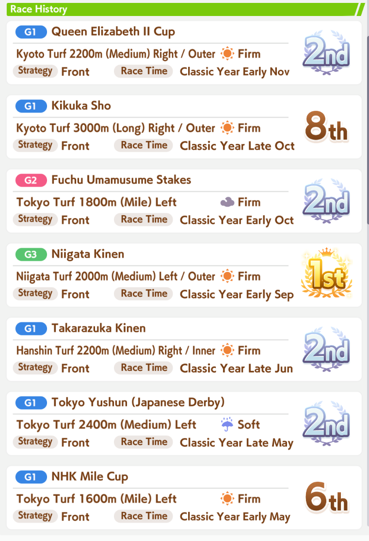 Here you go, you can skip the first yasuda kinen if you don't have any mood ups or heals, that's what I did