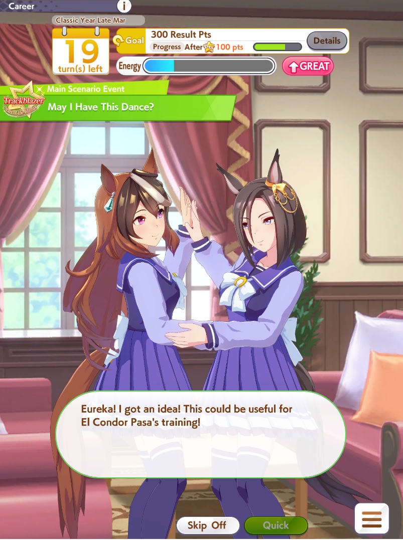 I did used two on her Is chinpo windy better than ksb for MANT? I do have her actually but I'm not completely sold on RB so far I just went for a maximum RB deck to test my first run and play right away but I dont feel like I was making massive gains or anything. I got 32/38 races and if I had to race even more then Id' have to keep a low or even awful mood until before summers.