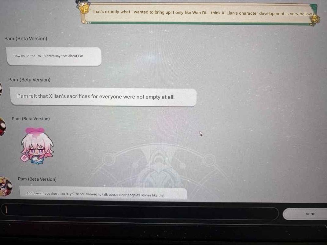 as long as i can figure out how to get around whatever safeguards are in place you could get pom to say whatever you want. i'm for sure going to start with getting pom to say FF is a lesbian and then phainon being straight for the meltys