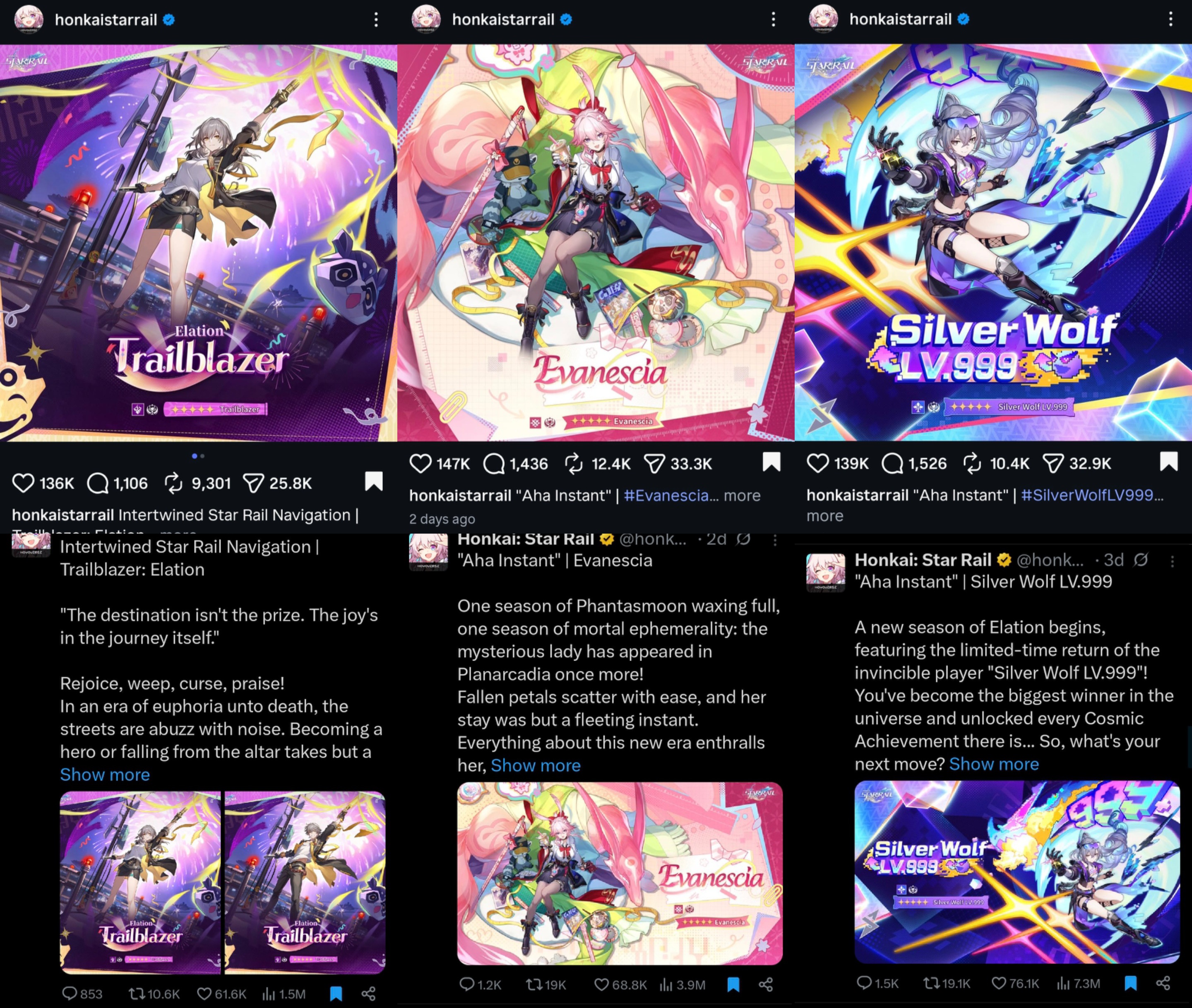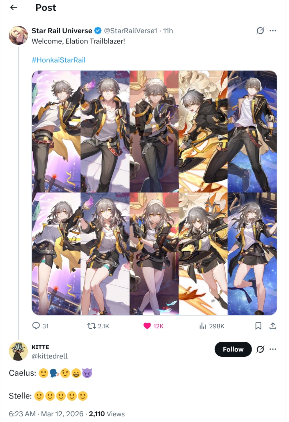 Previous: >>560163849>Version 4.1 "Unraveled for Daybreak" Special Program will be officially released on 2026/03/13 at 19:30 (UTC+8)https://www.youtube.com/watch?v=TgGPAPo02pM https://www.youtube.com/watch?v=H97-304rAxs >Download - https://hsr.hoyoverse.com/en-us/home>4.0 Preview Page - https://act.hoyoverse.com/sr/event/e20260206version-nwlbwa/index.html>Version 4.0 Trailer: "No Aha at Full Moon"https://www.youtube.com/watch?v=2hH0hILcWPs https://www.youtube.com/watch?v=EMT6GmhDiBk >Sparxie Character Trailer: "Ravings"https://www.youtube.com/watch?v=NU6J88t4luM https://www.youtube.com/watch?v=AdUoc-nSB94 >I'll Never Forgive Star Railhttps://www.youtube.com/watch?v=7ia3b_9-znQ https://www.youtube.com/watch?v=gI-W8r-TWUM >Current Character Banners: Sparxie, Yao Guang, Cerydra, Rappa, Sparkle + Pela, Hanya, Qingque - https://www.hoyolab.com/article/44017918>New Drip Marketing:>Silver Wolf LV.999 (5* Imaginary Elation) - https://www.hoyolab.com/article/44129793>Evanescia (5* Physical Elation) - https://www.hoyolab.com/article/44140823>Elation Trailblazer (5* Lightning Elation) - https://www.hoyolab.com/article/44152517>Redeemable Codes - https://hsr.hoyoverse.com/gift4T28RJM4MS3BSub2SparxieMH5KCBGF3AAT45QSTARRAILGIFT>/hsrg/ Tools & Resourceshttps://rentry.org/hsrg-resources-14>/hsrg/ Thread Templatehttps://rentry.org/hsrg-thread-template-14