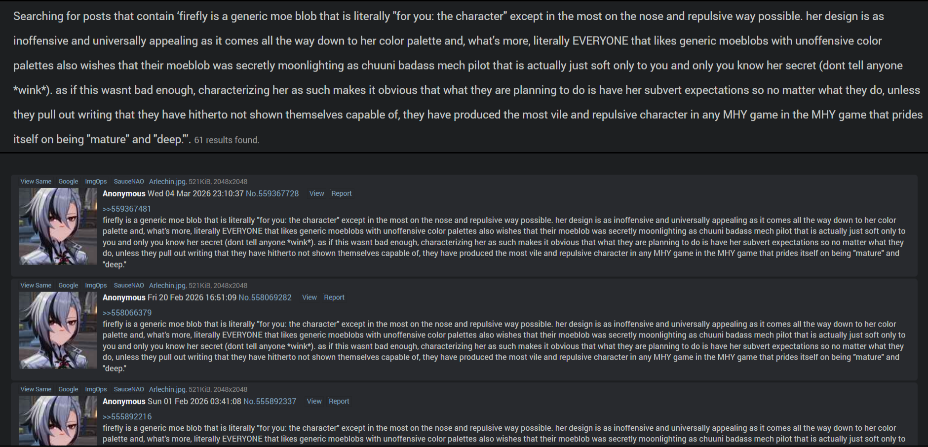 >>560195361ahahaha nobody likes the anni pushes mihoyo is PANICKING