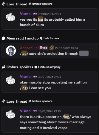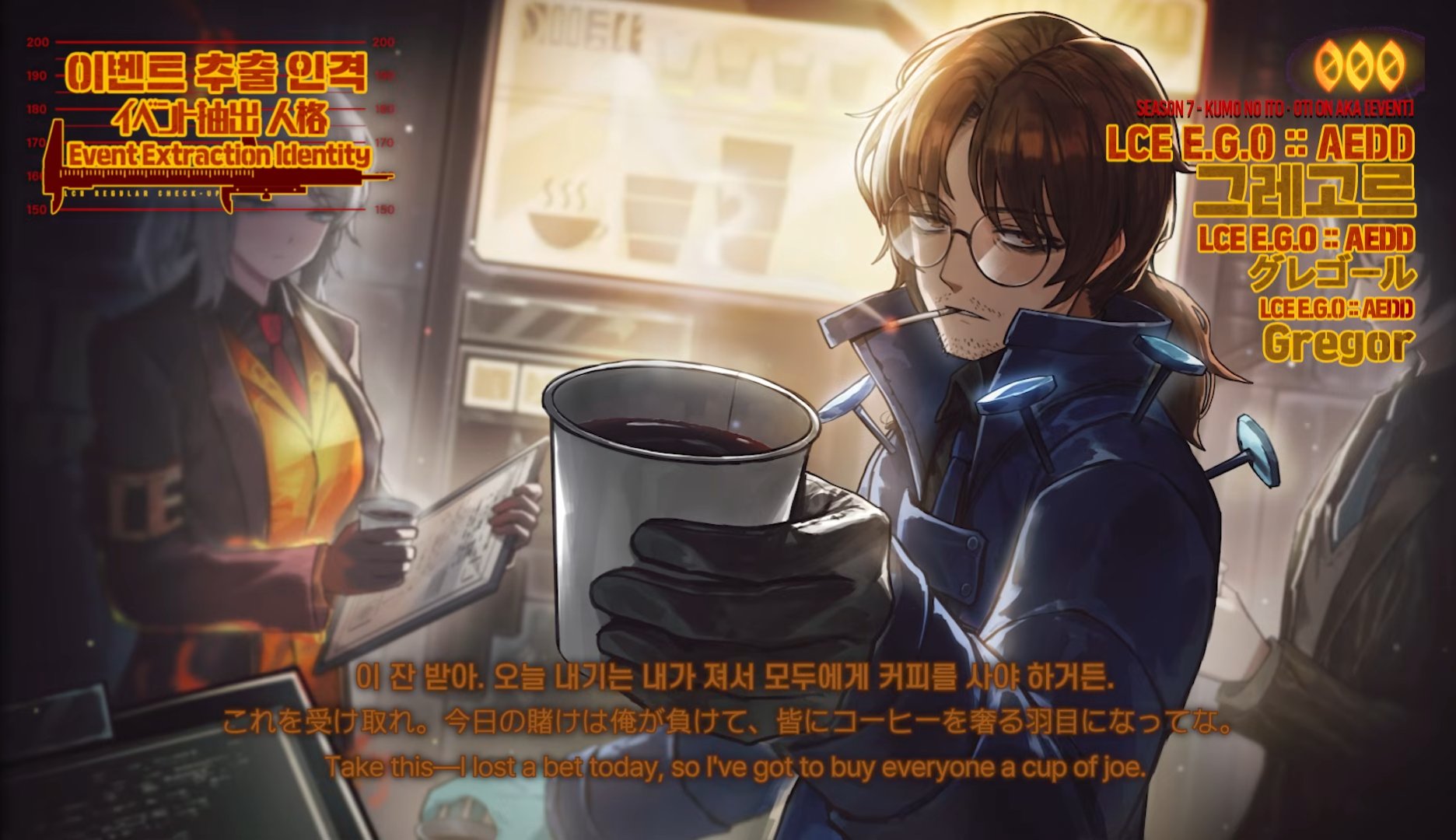 Previous thread: >>560145887Season 7 - Kumo no Ito2025.12.31 — Mirror Dungeon #7 - Mirror of Names and Spiders2026.02.19 —Refraction Railway Line 5 - Merry Go Round2025.02.20 —>Current EventsThe 8th Walpurgis Night - The Dusk of Amber2026.03.05 — 2026.03.193rd Anniversary Event2026. 2. 26 12:00 — 2026. 3. 26 10:00 (KST)>Current Extractions2026.03.05 — 2026.03.19[000] Lobotomy E.G.O::Hornet [Alteration] Meursault[000] Lobotomy E.G.O::Faint Aroma & Solitude Ryoshu[HE] Harmony Sinclair2026.03.05 — 2026.03.19Target Extraction: [ The 3rd & 4th Walpurgis Night BokGak ]>FAQs! This game is directly tied to the setting of Project Moon's previous games, Lobotomy Corporation and Library of Ruina, and is set after both. Expect spoilers for those games in this thread.! The tutorial is important.>Download linksAppStore: https://apps.apple.com/app/limbus-company/id6444112366Google Play: https://play.google.com/store/apps/details?id=com.ProjectMoon.LimbusCompanySteam: https://store.steampowered.com/app/1973530/Limbus_Company/>Other linksOfficial twitter: https://twitter.com/limbuscompany_bOfficial youtube: https://www.youtube.com/@ProjectMoonOfficialOfficial site: https://limbuscompany.global>Required readinghttps://mega.nz/folder/xosDkZ5Z#Wt4JpUt5Bb2XG77pxuuXpw>For all your EGO and Sinner info needshttps://limbus.kusoge.xyz/https://gll-fun.com/en/>Useful resources and a general guidehttps://rentry.org/lcg_resourceshttps://rentry.org/lcbguidehttps://rentry.org/LCB_optimal_grind_guidehttps://lcb-days-since-last-id.carrd.co/https://lcb-days-since-last-ego.carrd.co/>Countdownhttps://lcbcountdown.carrd.co/