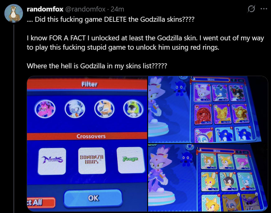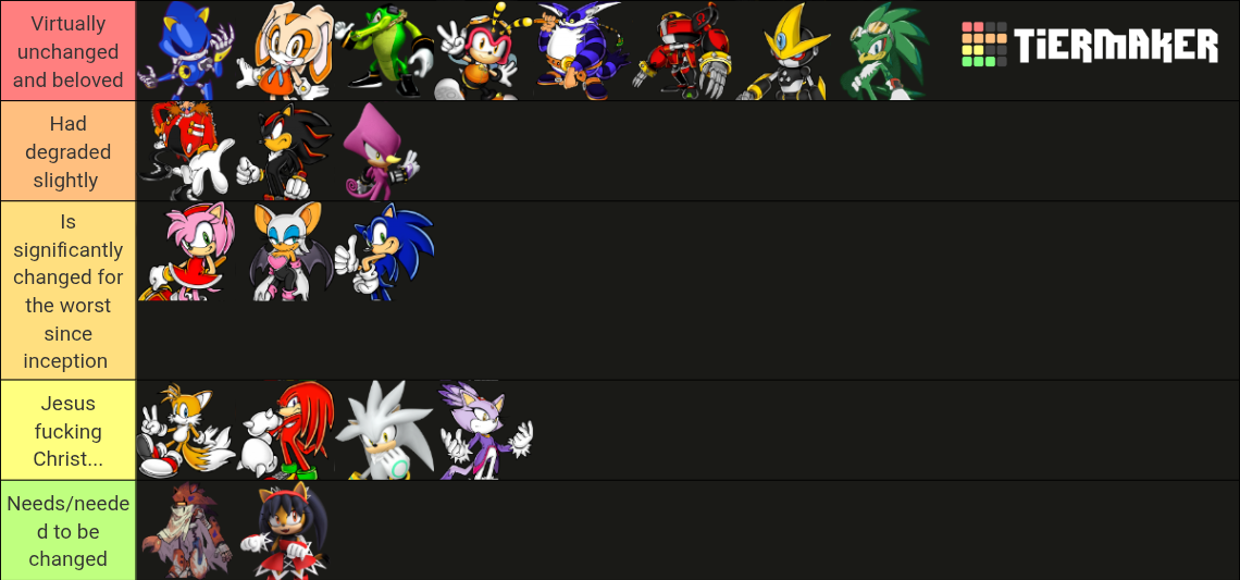 >has only degraded once, briefly (rumble) since her inception >Chaotix are more popular than they've ever been, have literally never degradedIs the key to surviving modern inshitification to just fly under the radar until someone passionate who cares about you gets you screen time?
