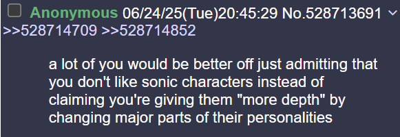 >>560234930>Why didn't Sonic Team think-Because they don't kekekekekekekBut yeah I agree with you, they had things that worked, things that could appeal to many but they just didn't build up on that. You'll even see a lot of new fans praising the older games for what they did