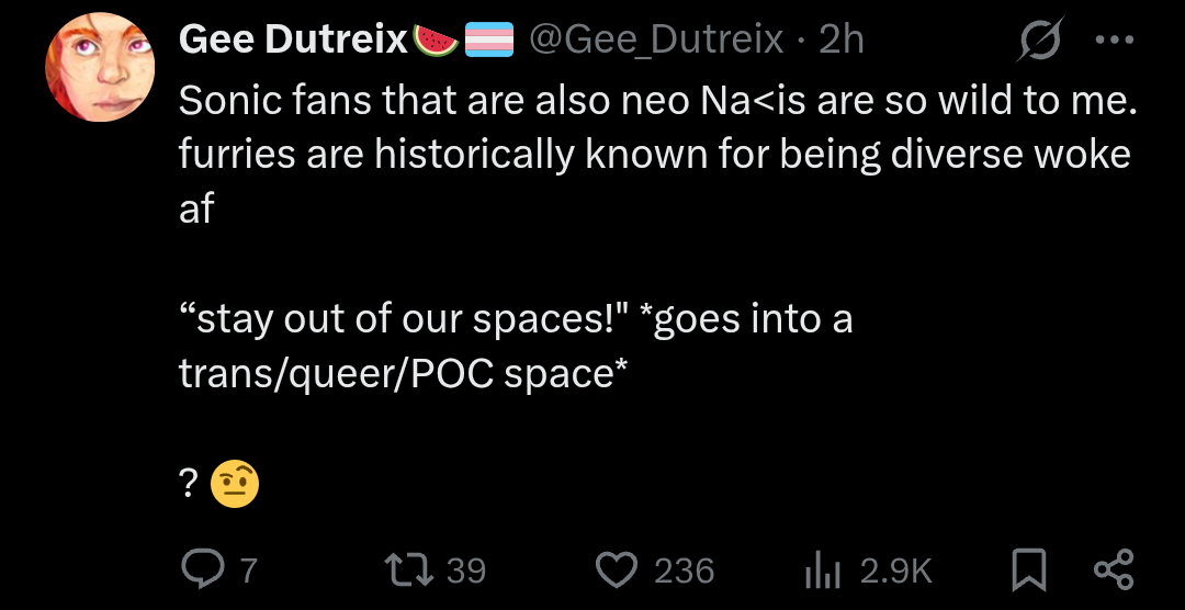 can I be a gay furry AND want to keep vaginas out of men's spaces AND want to bomb Iran AND want to fuck Sonic the Hedgehog?