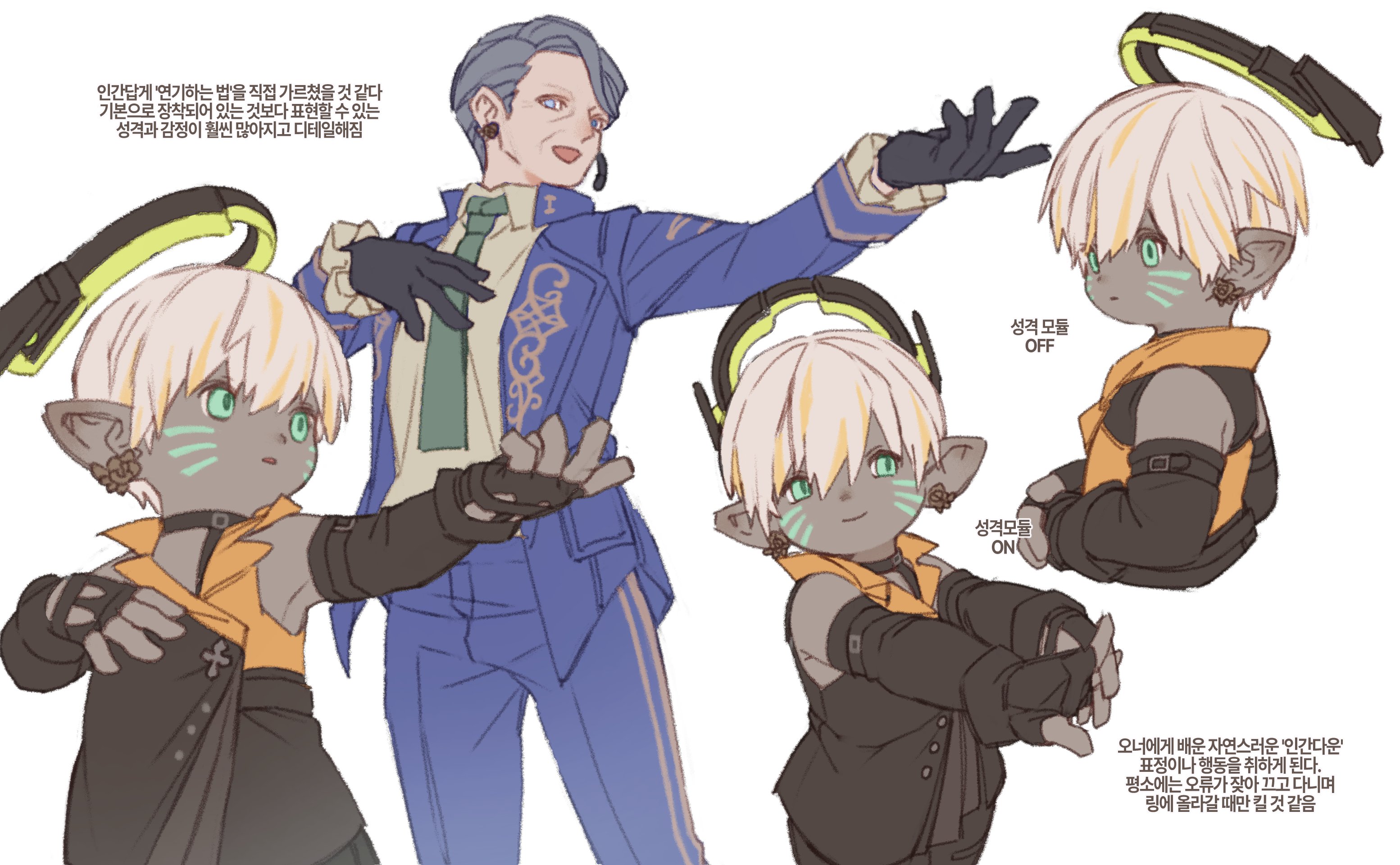 >>560218894Agreed. In another tweet he explains that he was friends with the WoL's father and adopted him after his parents died. Cute cute cute.The teal-eyed one is another OC who is supposed to be the Arcadion president's robot son.