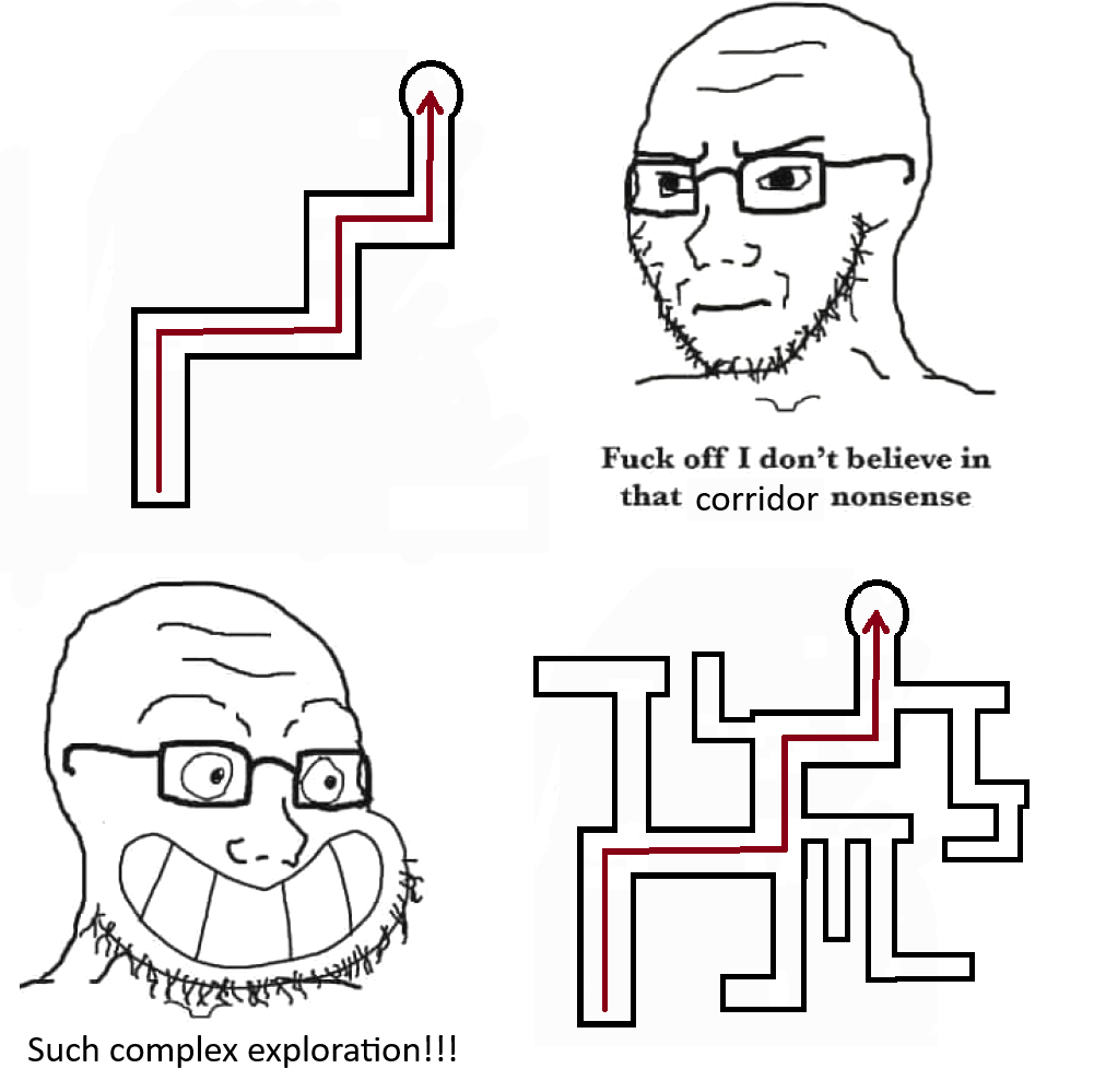 >>560232598>Do the latter>Except theres a key, enemy to defeat, level, etc randomly selected in a random path each run that is required to progressHow hard could it be?
