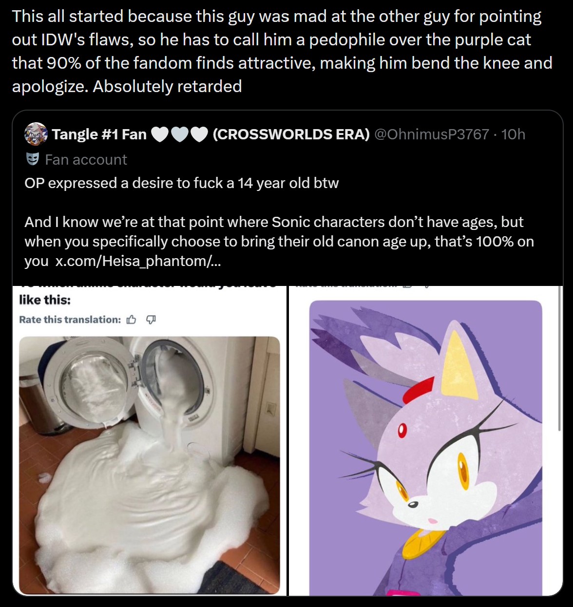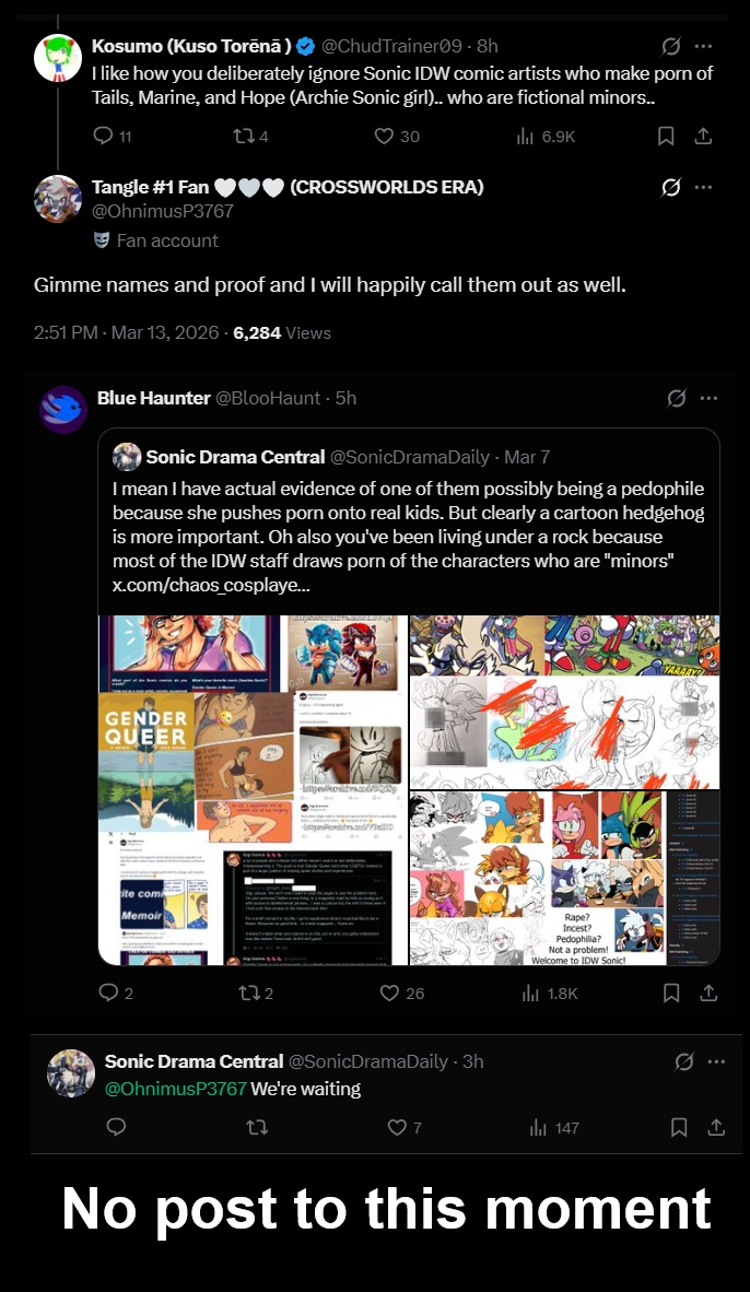 Reminder that the biggest way to scare off dykes is to have your female characters be clearly straight and/or paired off with whatever male character. Had Tangle and Whisper been more obvious with their attractions to Sonic and Silver, things wouldn't have been so bad.
