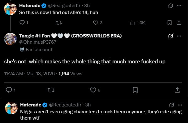 TANGLE IS A CHILD CHARACTER, SICKOS.