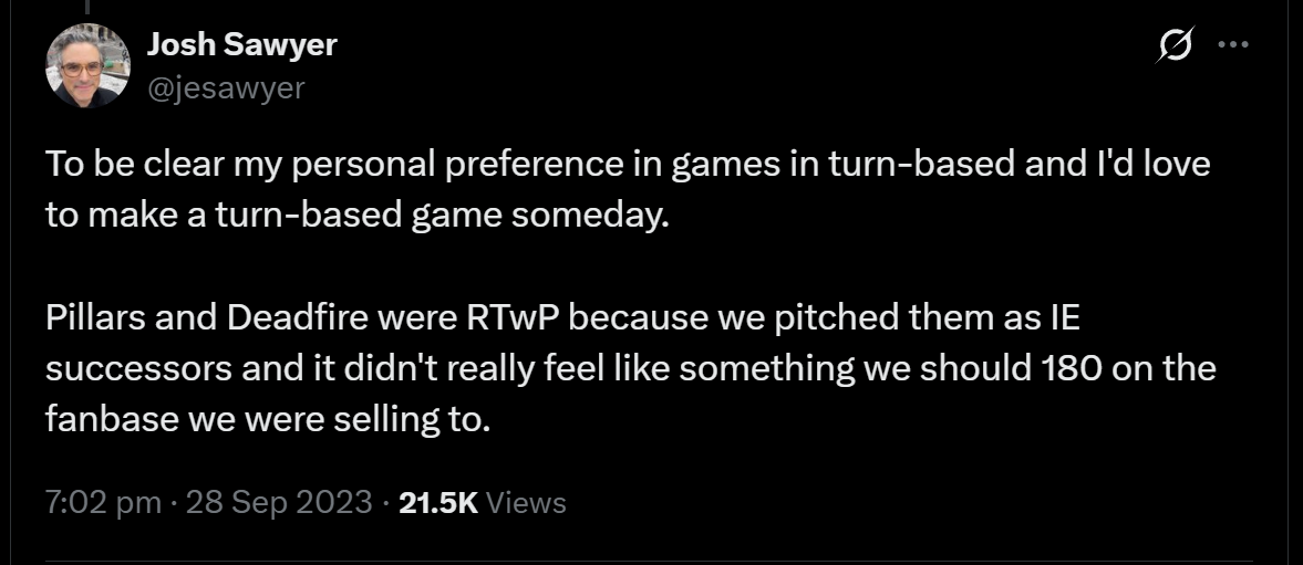 >makes the best rtwp system ever>make absolutely dogshit turn-based games>still prefers the latteris obsidian retarded?