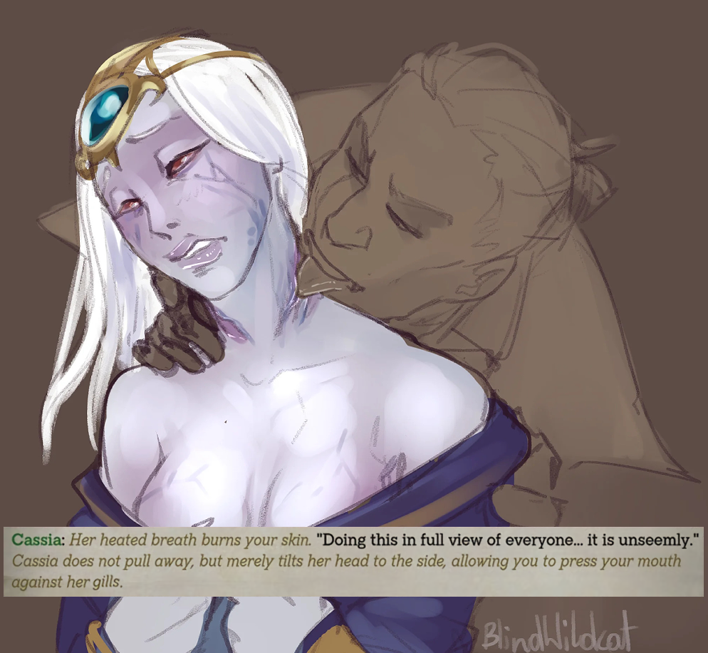 You know, as a succubi, Arueshalae had millions if not billions of demons, humans, devils, tentacle monsters and who knows what inside her but for you, she demands commitment and eternal love before opening her legs.