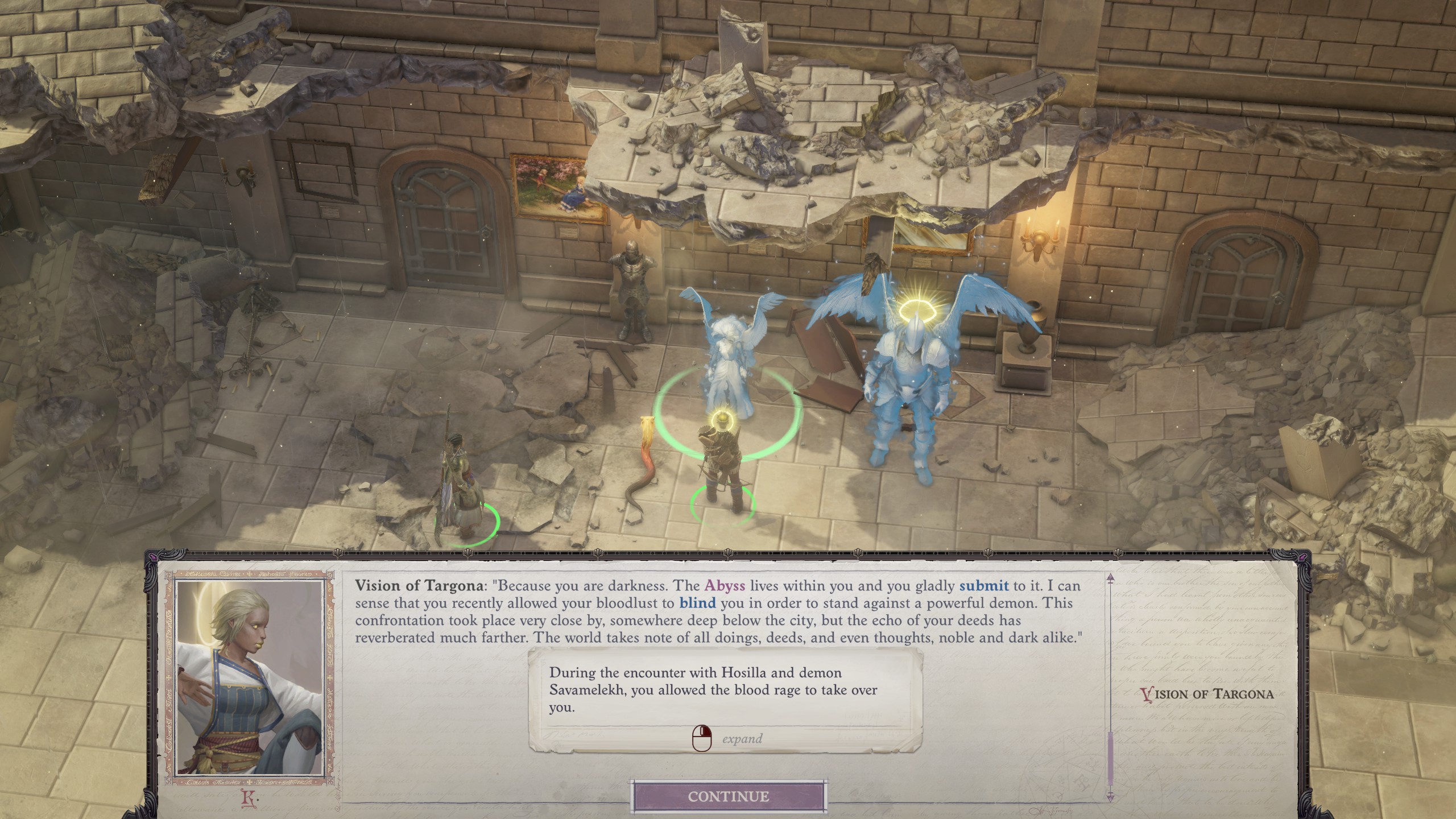 >>560273870>>560274720Once you get into the city you can justgo the kemm mansion and buy the ap cost reducing tea to cheat every fight. you need the noble tag to interact with her but if you dont have the red prince you can just get a hat called "the noble hat" from the white magister barracks that lets you buy her tea anyway. there is an ambush fight on the way there if you betrayed the doctor at bloodmoon island by killing the advocate. that ambush has level 20 enemies that might wipe your party but as long as 1 character lives it's fine since they escape after 1-2 rounds of combat or the turn after you kill or stun the first of them. you can min-max the fight for exp but it doesnt sound like your party is up for the task so just tank the loss. you can send in 1 character to die and keep the rest of your party far away when engaging it