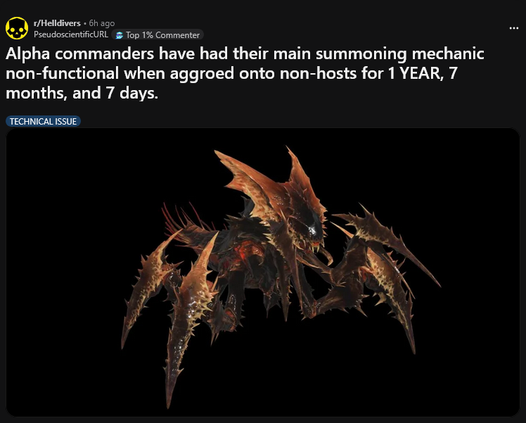 >>560253093>dev logs in to playtest this finally >does so alone>"alpha commanders seem to be working just fine">remains broken until EOS in 2030