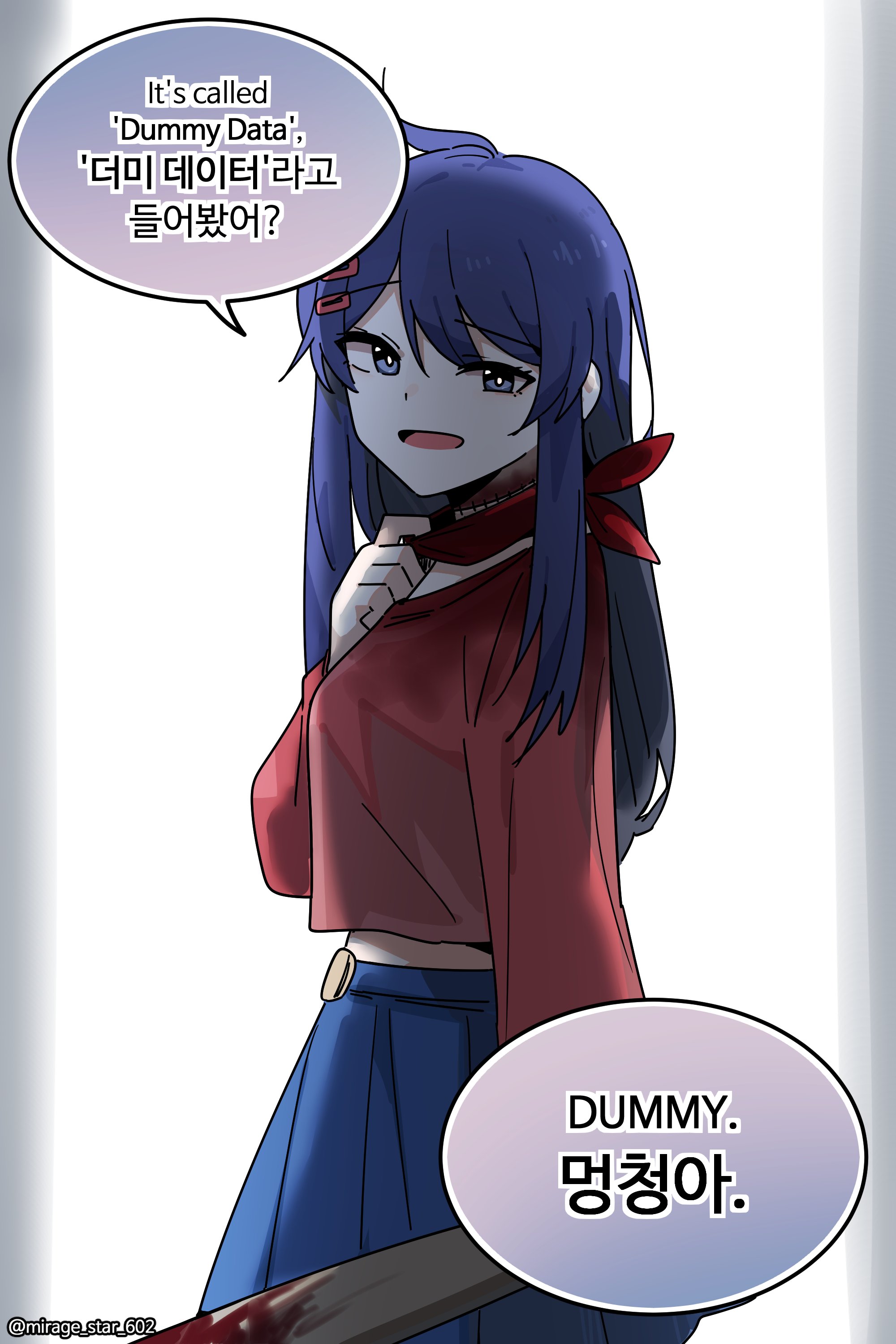 >>560502229Yeah. It's still cool tho. Don't really know what that "dummy data" is all about but it made for a cool line. Also I am quite curious to know how Kind Mita sewed her head back on. Maybe the artist will give us a part 2 one day.