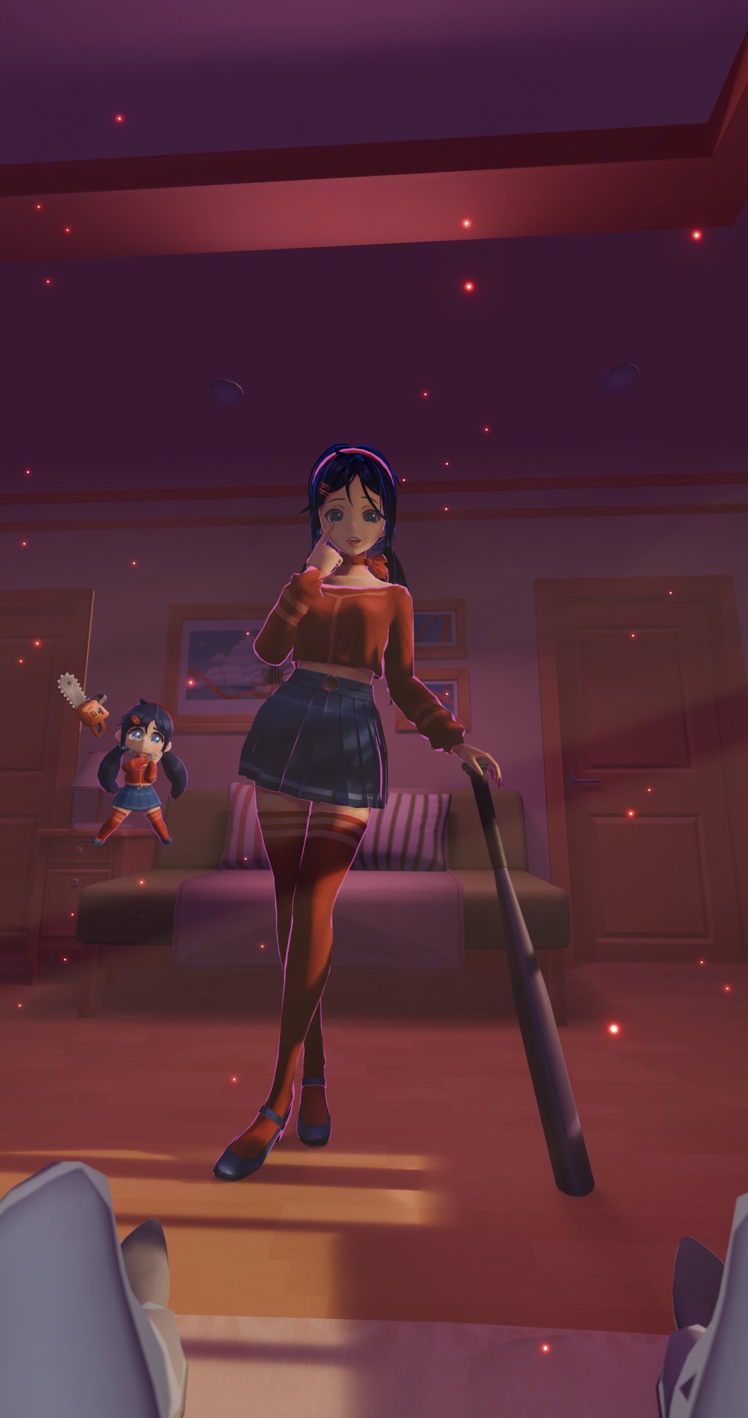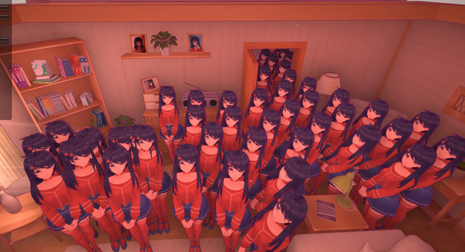 >>561963382I wanna see, like the other anon said, more of the game's strange world being shown. Plenty of interactions with Crazy, too. Maybe if you don't play the game for a while she sort of breaks the 4th wall and comments on that? More minigames, too. Maybe puzzles as well. Having Creepy come over to visit?I want there to be more than one ending to Peaceful. There could be at least a better ending and a worse one, depending on how the status of Crazy's love meter is. No joke, that is a thing that'll be in Peaceful from what the devs showed.