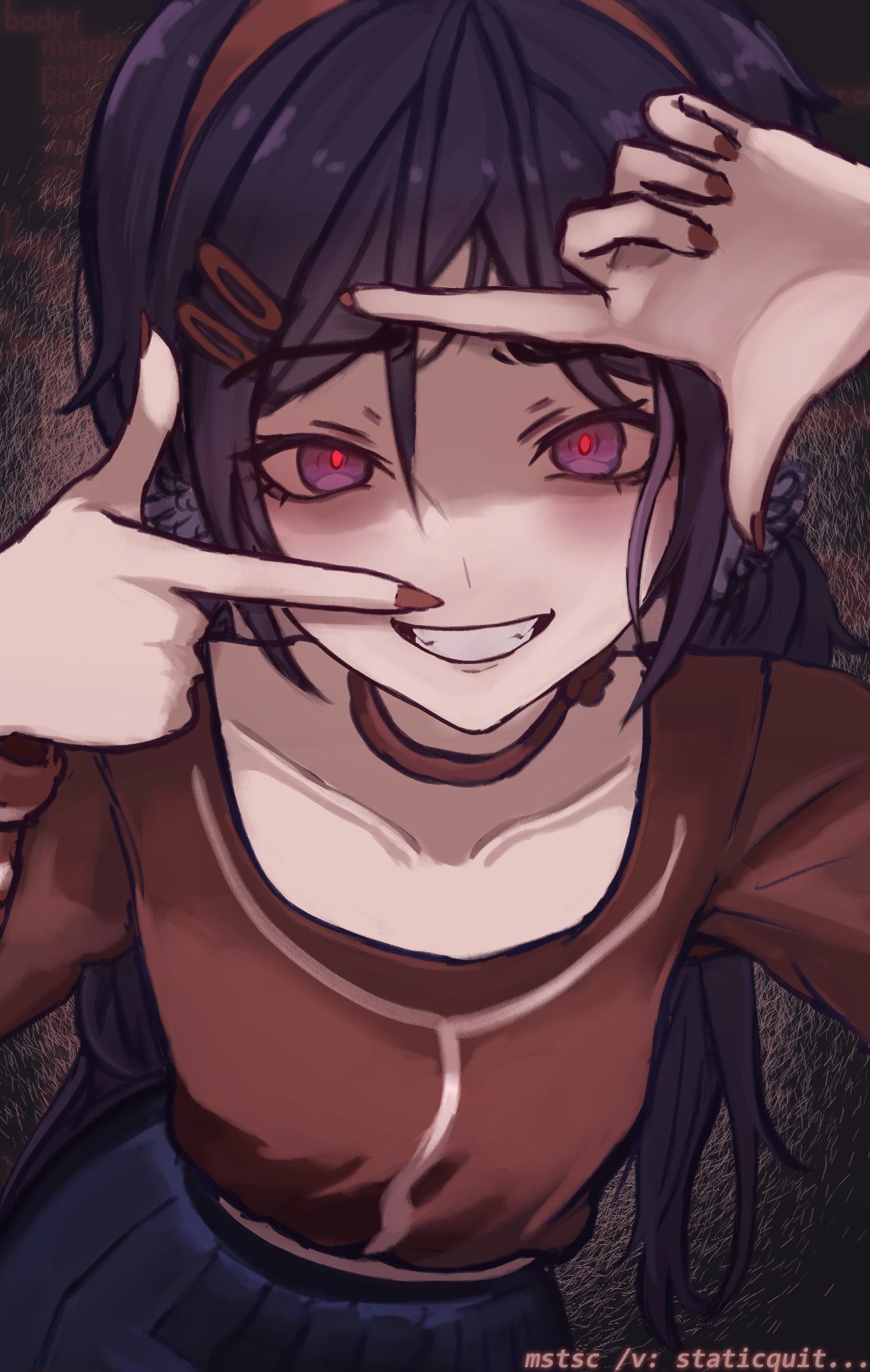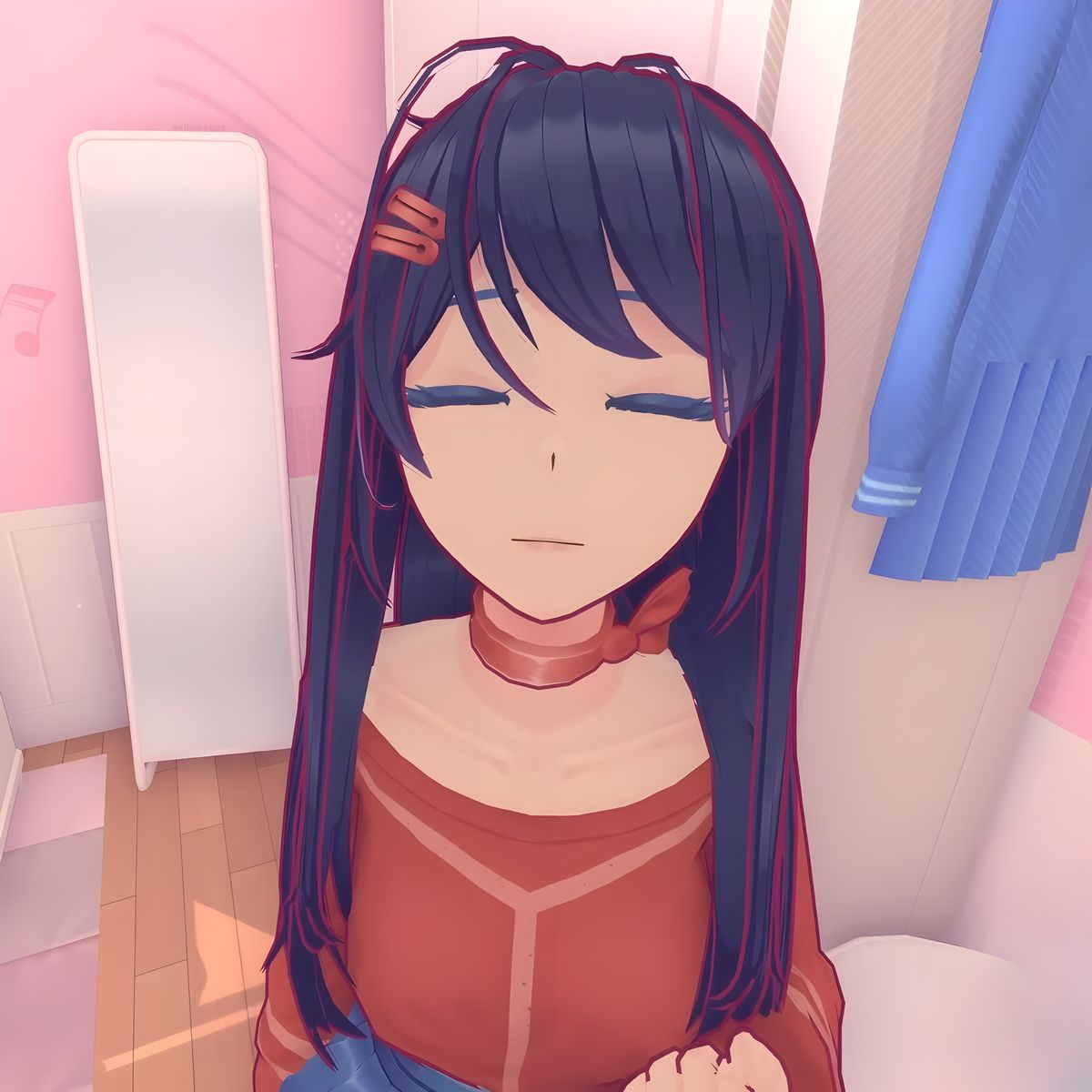 >>560715639Crazy's hair when she reveals her true self is curiously close to Shorthaired Mita's. Maybe after she kicks us out, she takes the appearance of a shorthaired Mita?