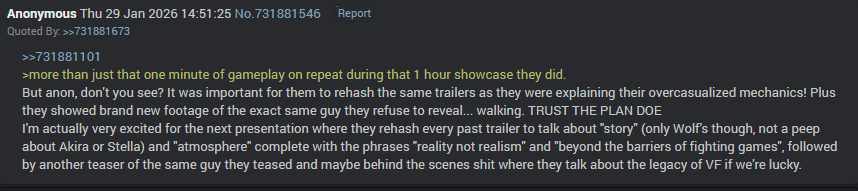 Bandai watching DOA and VF coming back knowing Tekken 8 ain't competing with those giants