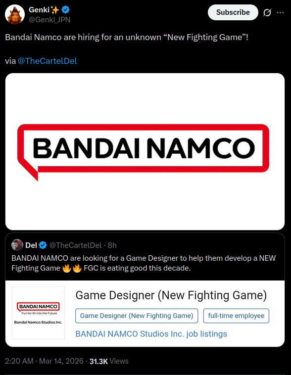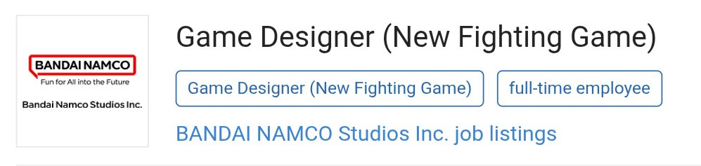 >Bandai Namco has a job listing for a Game Designer for a unspecified fighting gamehttps://hrmos.co/pages/bandainamcostudios/jobs/0000035