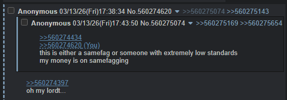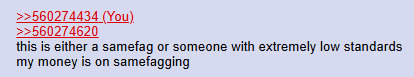 >>560274434>>560274620this is either a samefag or someone with extremely low standardsmy money is on samefagging
