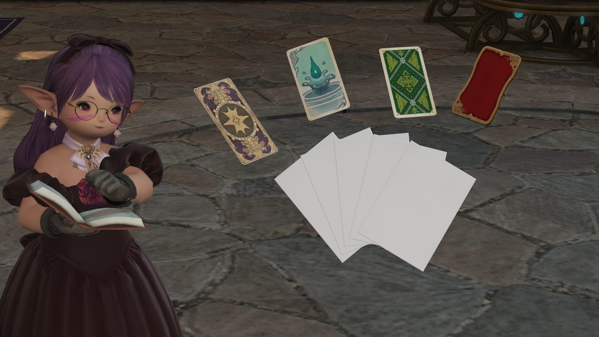 >>560284457I went through all the card props Brio has on offer, there's three individual ones and a spread card prop, but nothing specifically Triple Triad. You could also get cute with it and minimize the flying card mount's scale size if you want something that fits the Gold Saucer color scheme.If you want it for a pose, you could try using these cards as reference props while posing and edit the Triple Triad cards you want over them afterwards.