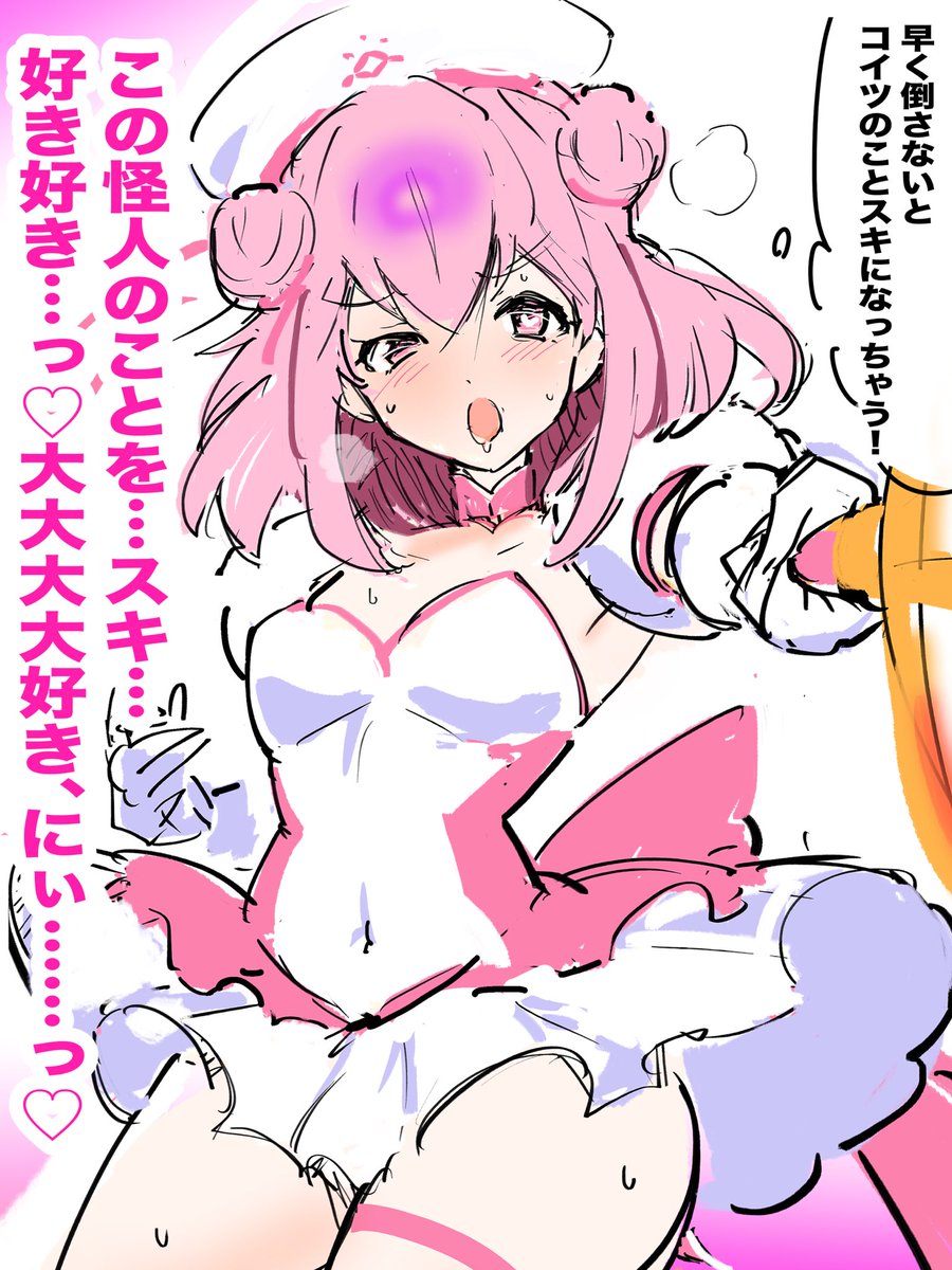 >A magical girl who has been cursed with a "curse that will make her fall in love with the enemy" if she doesn't defeat them within the time limit.cftf?