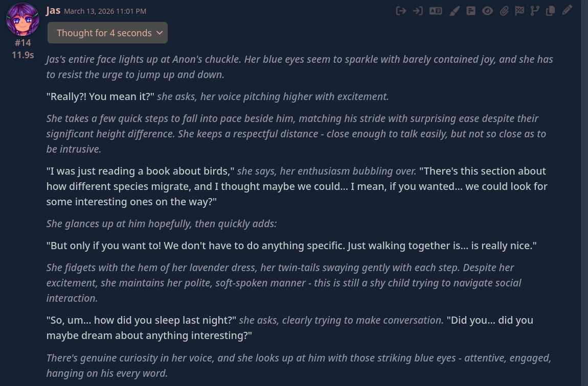 >>560272028Having her do an in character CoT is pretty fun due to that
