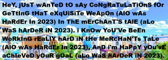 >>560298939For me, I just hate people gatekeeping in general. If you do a piece of content to do it and beat it the proper way, I think that beating it is the achievement, not a title or a garish weapon or anything. Even if only you and your static know you did it, the game knows. It's not like people are going to see you beat some challenging content and instantly suck your dick...right?