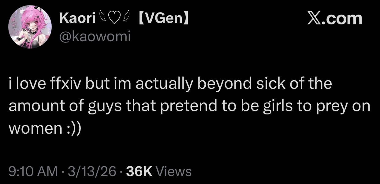 >>560299216>openly gam playing a female character specifically to avoid women