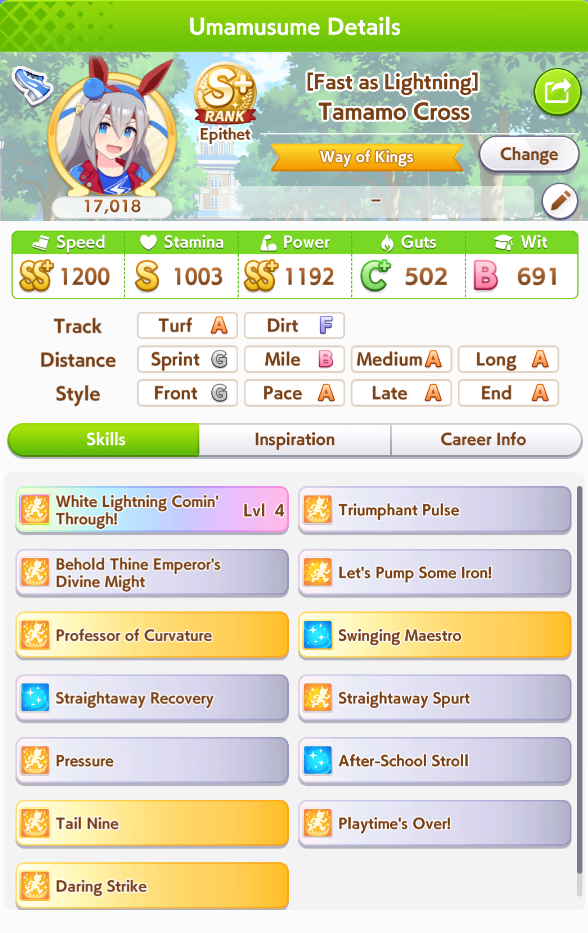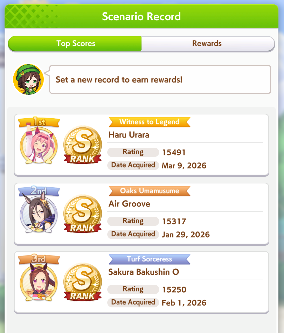 Previous: >>560286478>Global Game NewsLink your account to Cygames iDCurrent Scenario: Make A New Track aka "Trackblazer"Current Rate Up Trainee: Kitasan Black (3*), Matikanetannhauser (2*)Current Rate Up Support Cards: SSR Narita Top Road (Speed), SR Admire Vega (Guts), SR Mejiro Ryan (Stamina), SR Bakushin (Power)Current CM: Pisces Cup - Hanshin Turf 3200m03/02 - 04/14 - Halved TP Cost & 2x Career Mode Rewards03/02 - First Anniversary Part 103/05 - Admire Vega (3*), Kawakami Princess (SSR), Fine Motion (SSR)03/12 - First Anniversary Part 203/12 - 03/24 - Free Daily 10-Scouthttps://umamusume.com/news/632/03/12 - Kitasan Black (3*), Matikanetannhauser (2*), Narita Top Road (SSR)03/12 - Flying Run-Up! Story Event03/12 - Trackblazer Release date03/22 - Satono Diamond (3*), Curren Chan (SSR), Marvelous Sunday (SSR)03/23 - First Anniversary Part 403/23 - Agnes Tachyon, Narita Taishin, Narita Brian legends races03/26 - First Anniversary Part 403/26 - Mejiro Bright (3*), Curren Chan (SSR), Zenno Rob Roy (SSR)03/26 - 04/05 - Pisces Cup - Long/Right/Spring/Heavy/3200https://pages.snep.pw/uma/anni-skill-changes/>JP Game NewsCurrent Rate Up: Loves Only You (3* alt), SSR Marche LorraineNew Scenario "Beyond Dreams" releasedTimeline: https://uma.moe/timelineCygames Webstore: https://webstore.cygames.com/en/umamusume_en/>Thread Clubshttps://rentry.co/umaglobalclublistYou must be E3 (20k points) to join a circle. Apply with /uma/ or /vg/ in your profile or post ID in the thread.>All Guides & Resourceshttps://rentry.org/uma26Game databasehttps://gametora.com/umamusume (Click the gear to switch between JP / global server info)A basic guide for newfagshttps://rentry.org/umaglobalFind networks if your region is blocked from the game or clienthttps://www.umavpn.top/Seiyuu & Concertshttps://rentry.org/umstUmamusume Birthday Calendarhttps://ウマ娘.攻略.tools/events/birthdayUma Texthttps://umareader.idsmile.xyz/